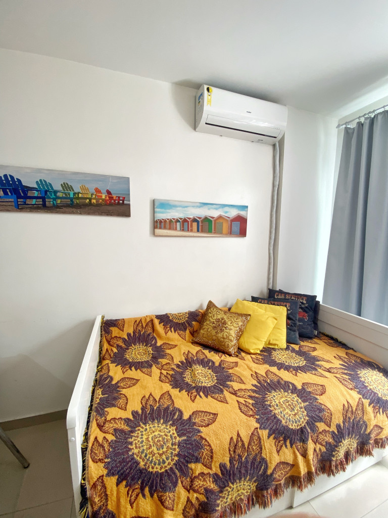 Ar condicionado silencioso no quarto e na sala.