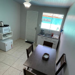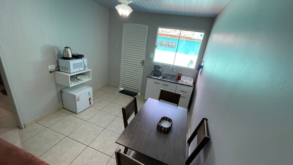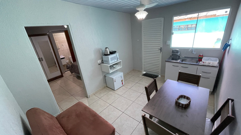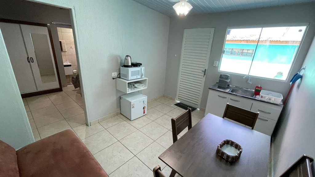 O imóvel conta com uma cozinha compacta, com mesa para refeições, micro-ondas para esquentar ou fazer refeições.Um sofá cama que comporta um adulto porte pequeno/médio ou uma criança confortavelmente. Uma quarto com um guarda-roupa, uma cama de casal e uma smart tv com serviços de Streaming instalados ( não fornecemos usuários para acesso) ;Banheiro completo com chuveiro com água fria ou quente, vaso sanitário, pia e espelho. Fornecemos enxoval de cama e banho para cada hóspede. Contamos com uma vaga de estacionamento que fica na calçada do imóvel e protegido por correntes e câmeras de segurança.