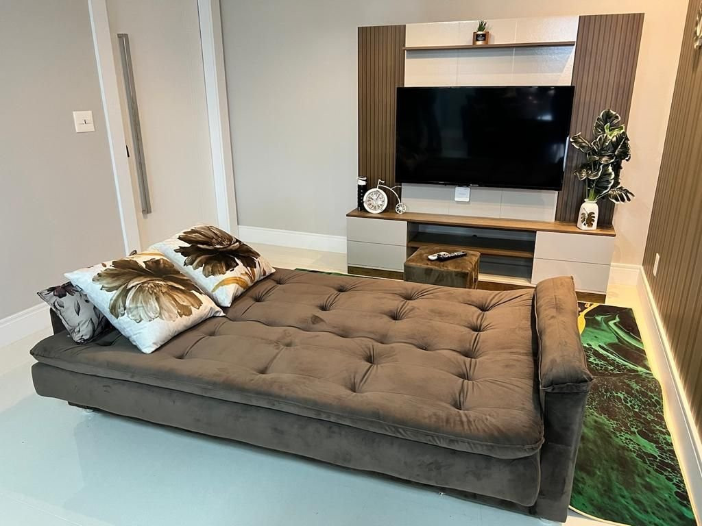 Apartamento excelente, pertíssimo da praia, podendo ir a pé. Ele conta com duas suítes, ambas com cama de casal e uma podendo der duas bicamos de solteiro. Apartamento moderno com varanda com ampla vista da cidade, garantindo um lindíssimo por do sol para nossos hóspedes. Sala com sofá cama, assim comprovante até 07 pessoa sem sua viagem de férias com a família, Prédio recém finalizado e que conta com piscina, Spa, Sauna, brinquedoteca, sala de jogos.