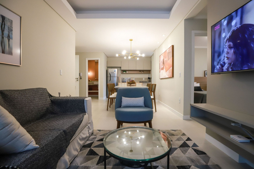 Estamos localizados em Canto Grande, na Rua Amoreira, há 150mts do mar.Apartamento com dois quartos, ambos suíte, um com cama de casal e o outro com duas camas de solteiro. É o lugar perfeito para férias em família ou até mesmo trabalho remoto. Um ambiente todo novo e cheio de charme e elegância, onde com certeza você se sentirá em casa, de tanto aconchego.Sacada com churrasqueira, ótima para momentos únicos entre amigos e/ou família.A cozinha e a sala são integradas em conceito aberto, com ar intimista nos convidando a viver momentos únicos.O prédio conta ainda com uma área de lazer para crianças brincarem em segurança dentro do condomínio.