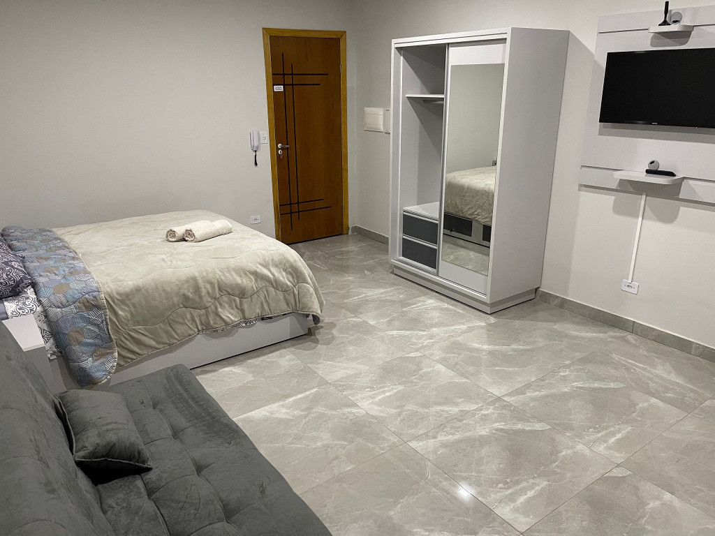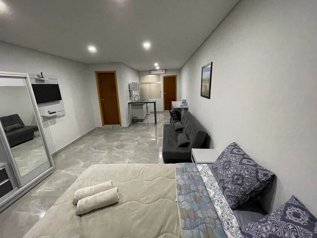 Novo apartamento Studio situado no polo comercial de Foz. A poucos metros da Ponte da Amizade, sendo uma ótima opção para quem vem conhecer Foz e comprar no Paraguai.