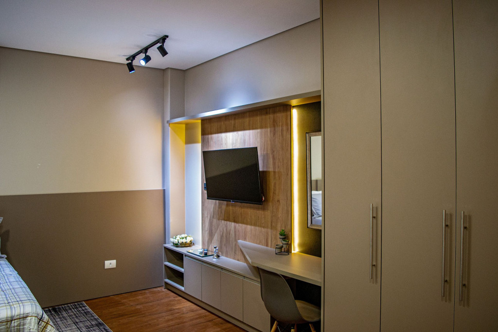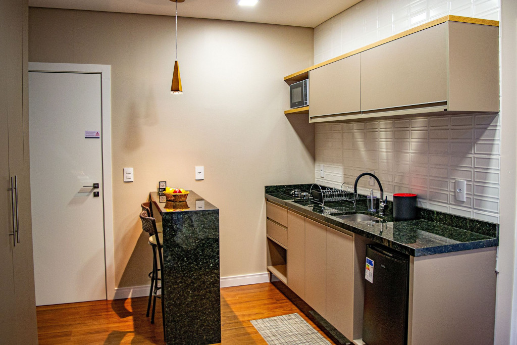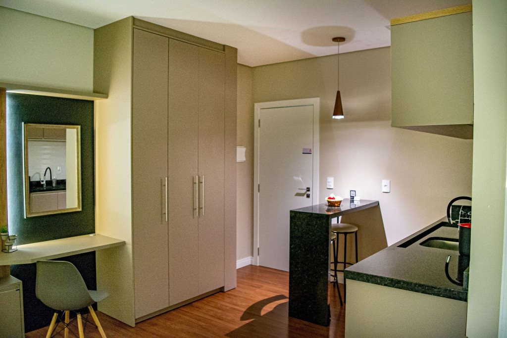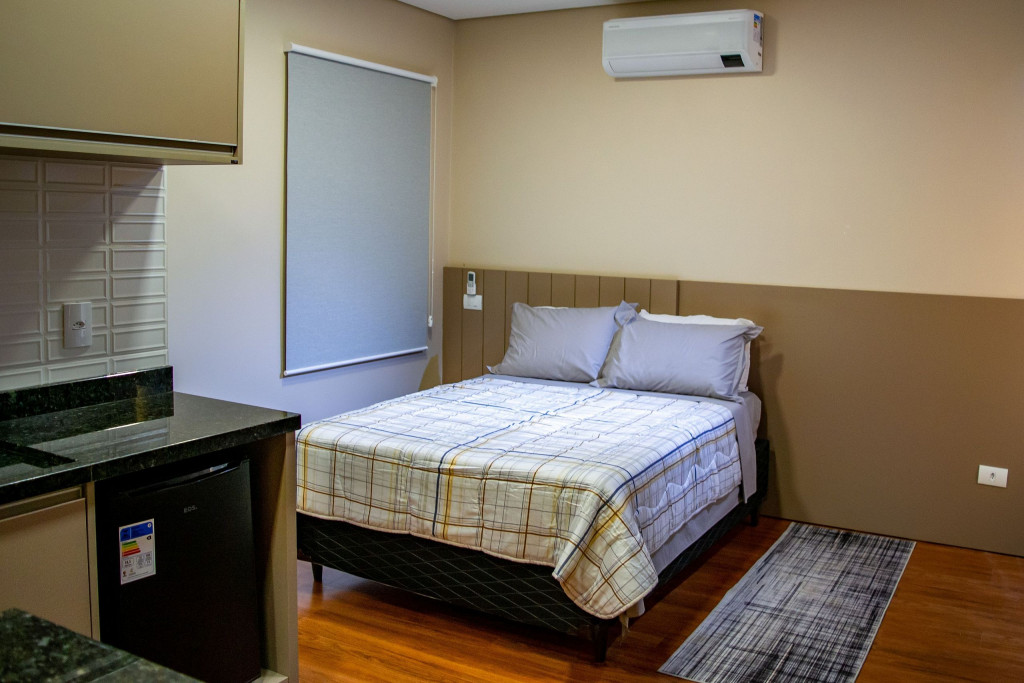 Seus apartamentos contam com cozinha equipada, Smart tv, cama confortável, ar-condicionado que refrigeram todo o espaço, central de trabalho/estudos, enxoval de cama e banho.
