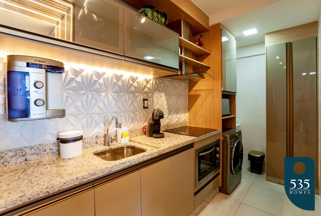 Cozinha bem equipada e planejada com tudo necessário para sua estadia.