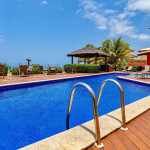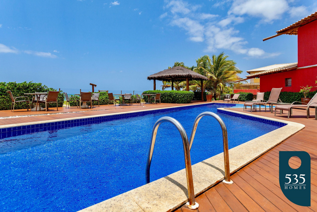 O condomínio tem ótima área de lazer com piscina e parque infantil, bem em frente a praia.