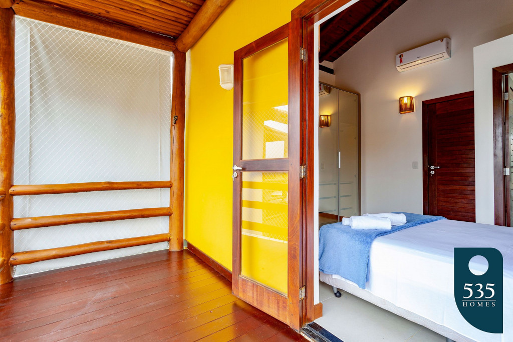 No piso superior estão 2 suítes e uma varanda.