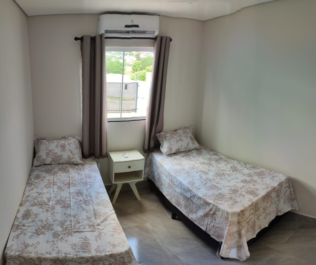 O imóvel conta com cama de casal casal e um sofá cama na sala. Ele conta com uma Smart tv, wifi de alta velocidade, fogão, cozinha equipada com bancada para refeições e garagem dentro do prédio e segurança( alarme e cerca elétrica). Oferecemos roupa de cama e banho para cada ocupante da reserva.Perto da Rodoviária internacional de Foz, supermercados, farmácias, posto de gasolina e 07 minutos do principal shopping da cidade - JL Shopping