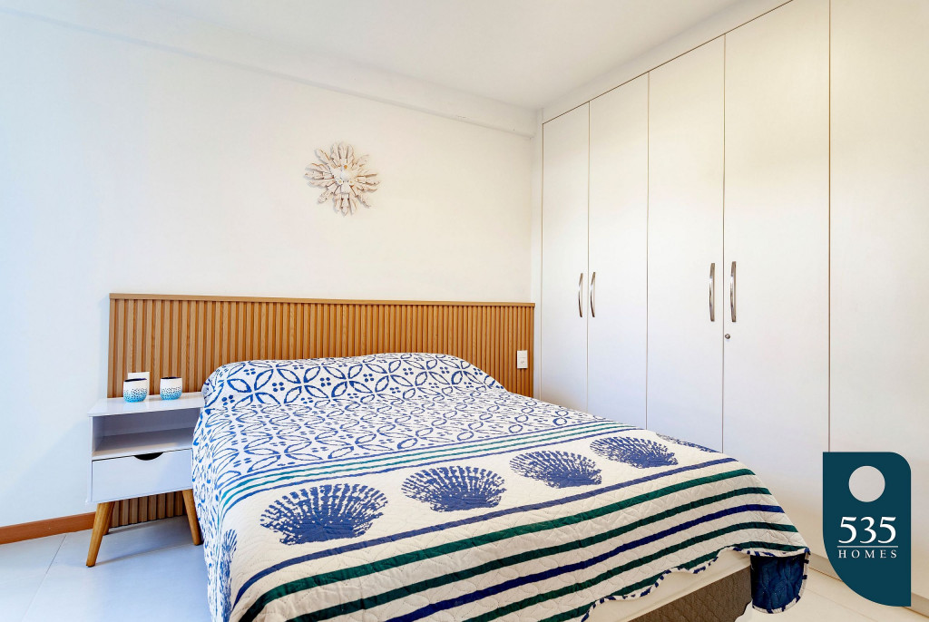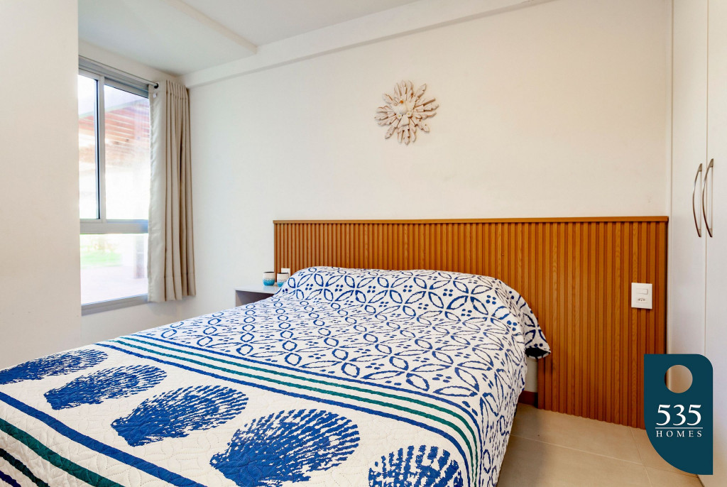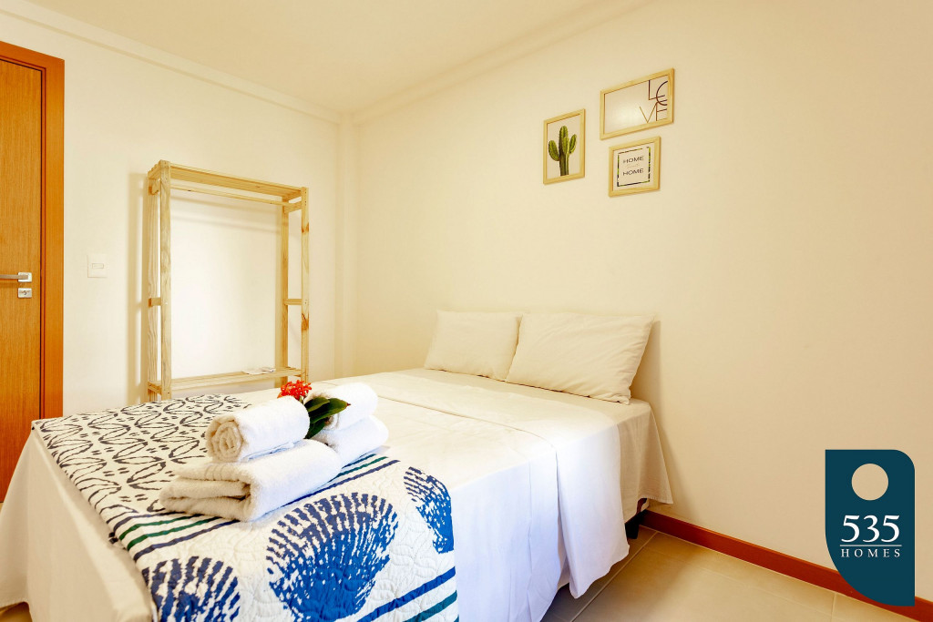 São 3 suítes, todos com ar condicionado, que acomodam até 6 adultos.Duas suítes possuem cama de casal tamanho Queen e a terceira possuí 2 camas de solteiro. Varanda com Jardim equipada com mesa e ombrelone para você degustar aquela bebida gelada ou comer um delicioso acarajé.O apartamento possuí cervejeira na varanda, TV na sala com sofá para você assistir aquele seriado, e internet wifi em todo imóvel. Para o seu maior conforto, oferecemos roupas de camas e toalhas.