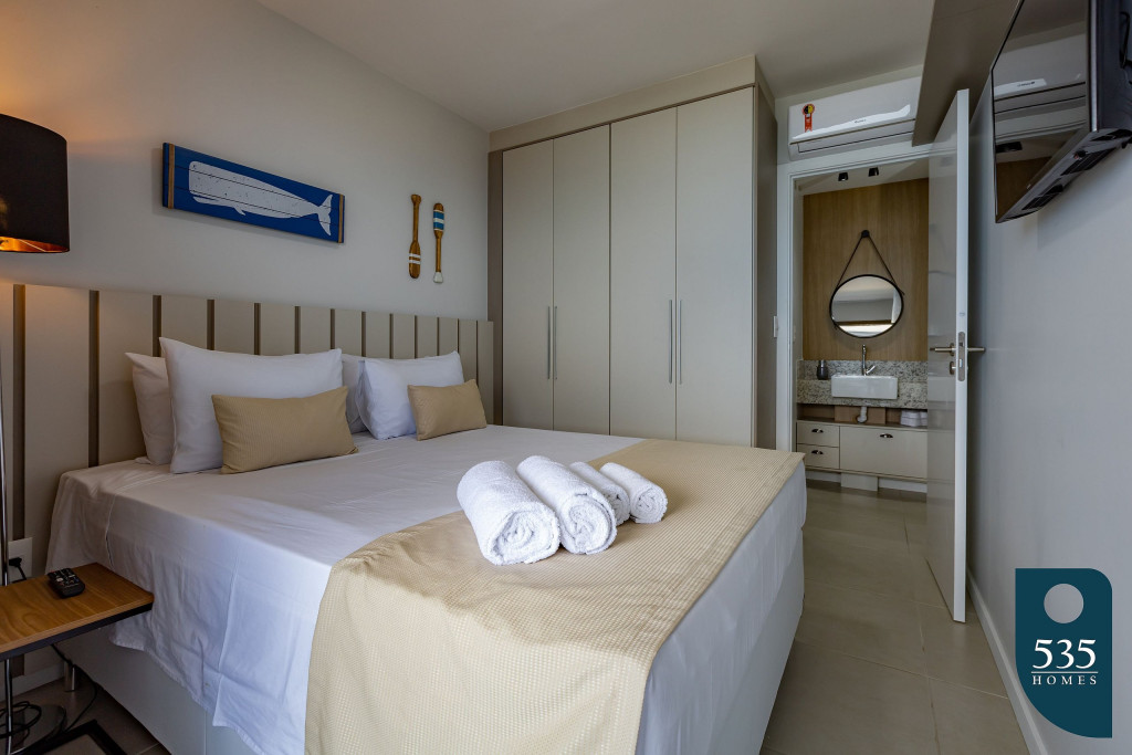 O apartamento possuí enxoval profissional de hotelaria.