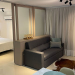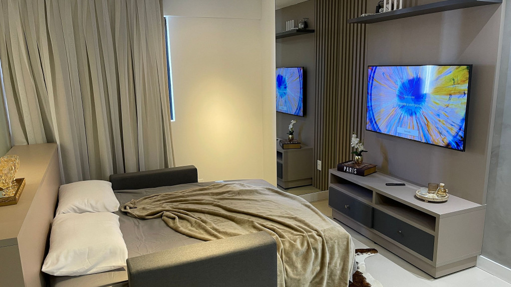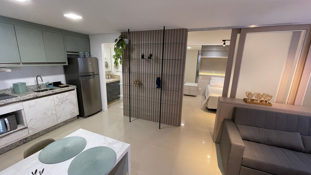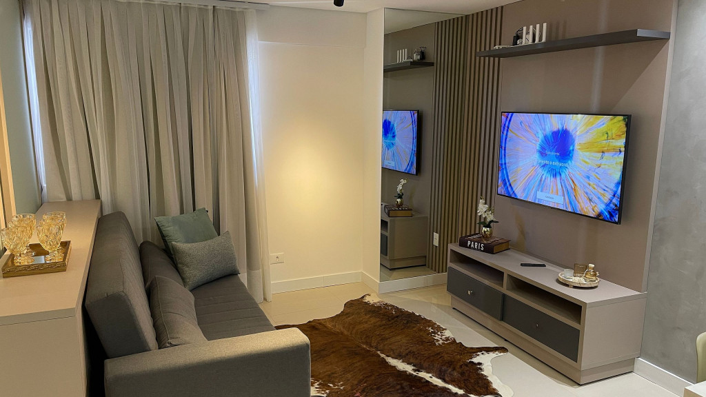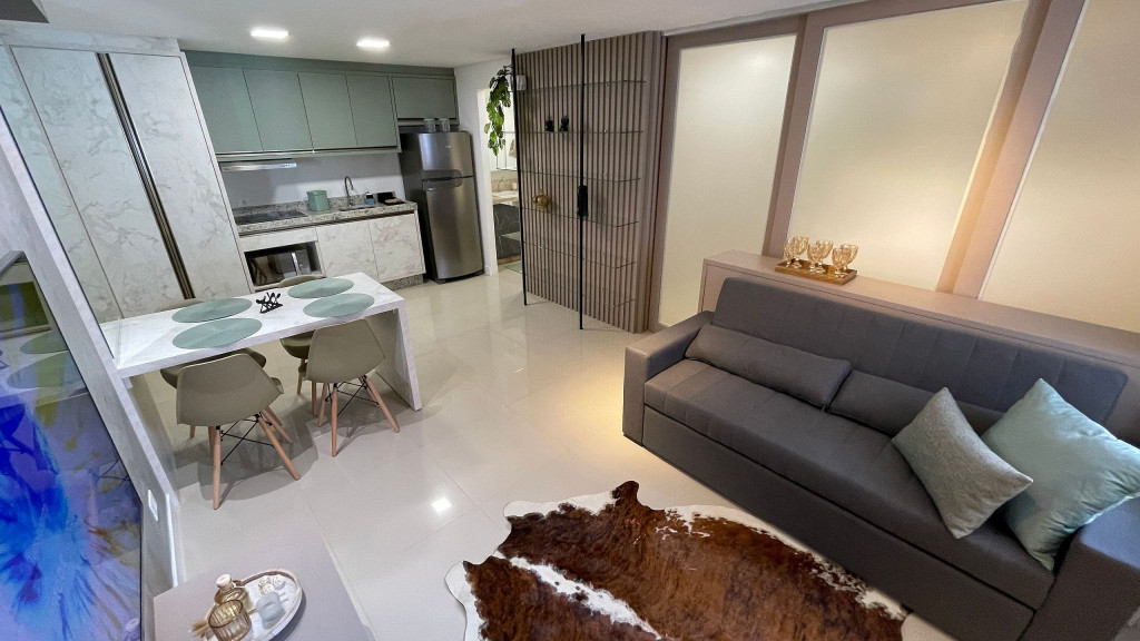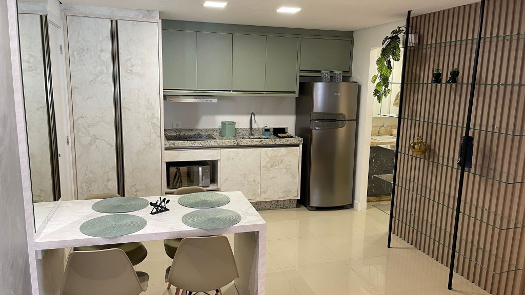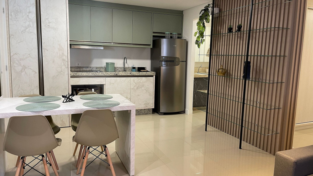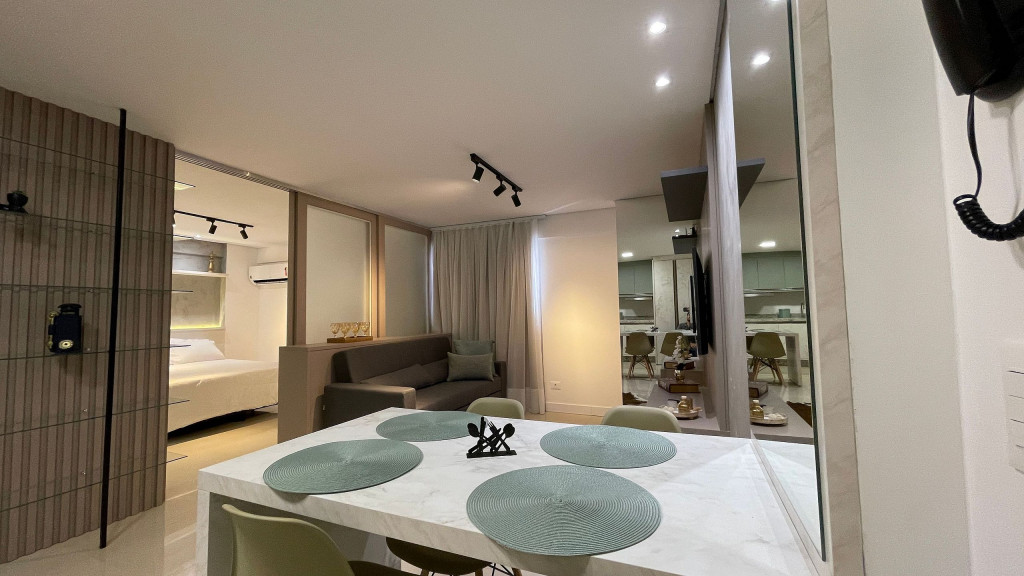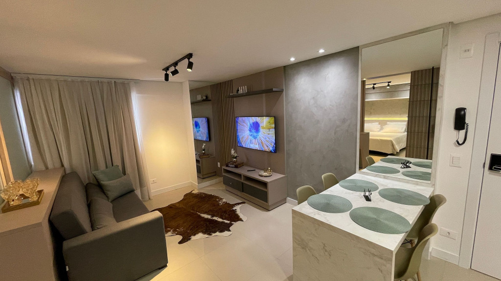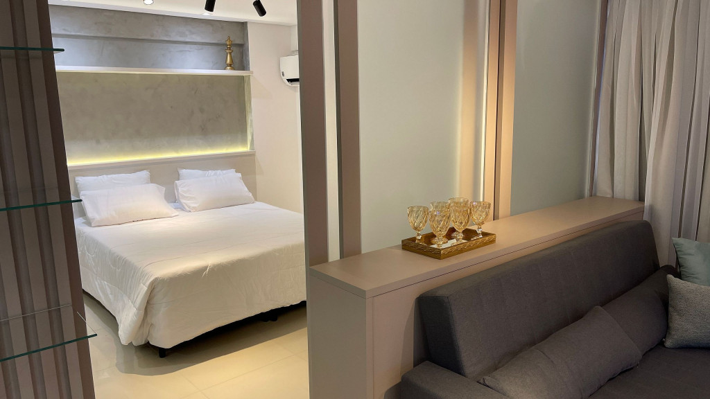 Apartamento moderno com ambiente unificado ou separado por portas e ambientado com muito carinho dispondo de tudo que você precisa para uma hospedagem confortável. Situado a uma quadra da avenida Jorge Schimmelpfeng, no centro de Foz do Iguaçu, possibilitando acesso à pé aos mais famosos bares e restaurantes da cidade (Capitão Bar, Bona Trattoria, Rafain Chopp, Maki Sushi, Imperador dos Camarões, ...).