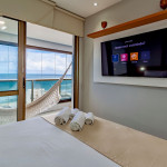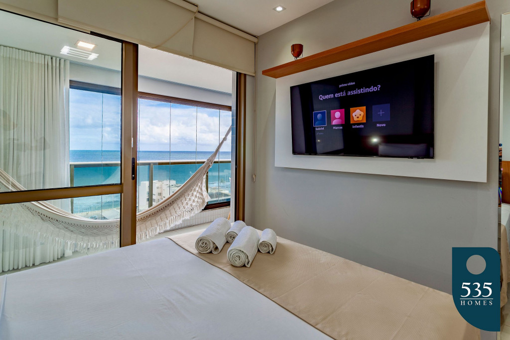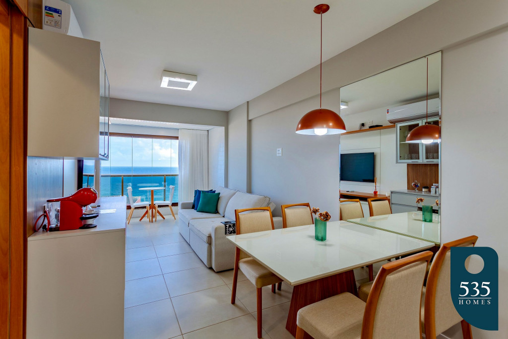 Apartamento incrível, novo com vista para o mar de 48 m² super decorado com sofá cama muito confortável para assistir televisão ou dormir 1 pessoa, quarto com cama Queen, rico em armários e com ar condicionado Split. Varanda integrada para descansar na rede e apreciar a vista para o mar do 6° andar do prédio. Nossa cozinha é espaçosa e equipada com todos os utensílios necessários.Apartamento no circuito Barra - Ondina do Carnaval de Salvador.