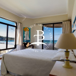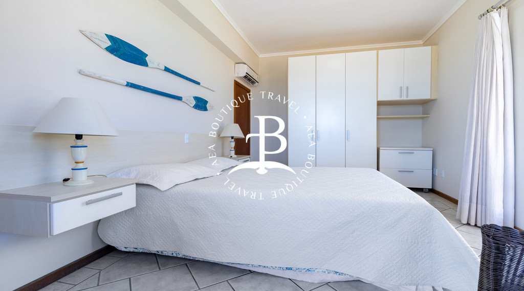 Configuração dos quartos, todos com ar condicionado: 1 piso-Quarto 1: suíte com 1 (cama) casal. 2 piso-Quarto 2: 1suíte com 1 (cama) casal e varanda vista mar. Quarto 3: 1 (cama) casal com vista para o mar e varanda. Quarto 4: 1 bicama + 1 cama de solteiro, varanda e vista para o mar, banheiro no corredor. O imóvel acomoda até 9 adultos em camas e 2 crianças em colchões extra.