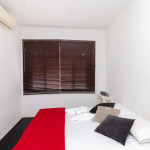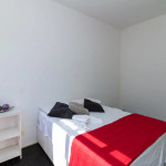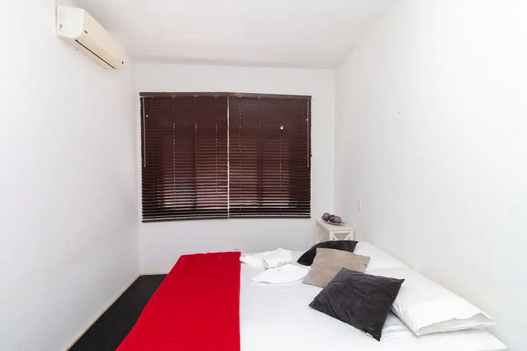 - The room is climatized with air conditioning and has a double bed, closets and hangers. Bed, bed sheets and pillows are new and comfortable.
