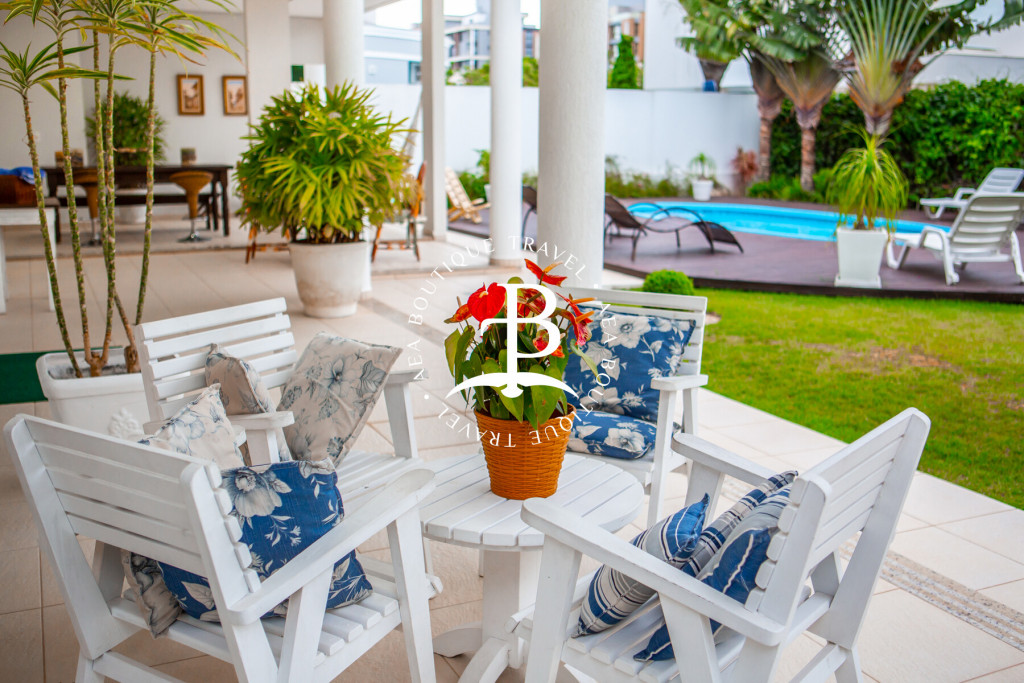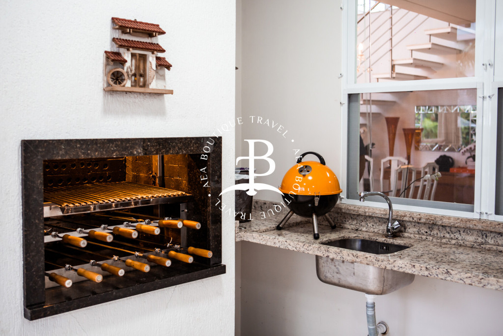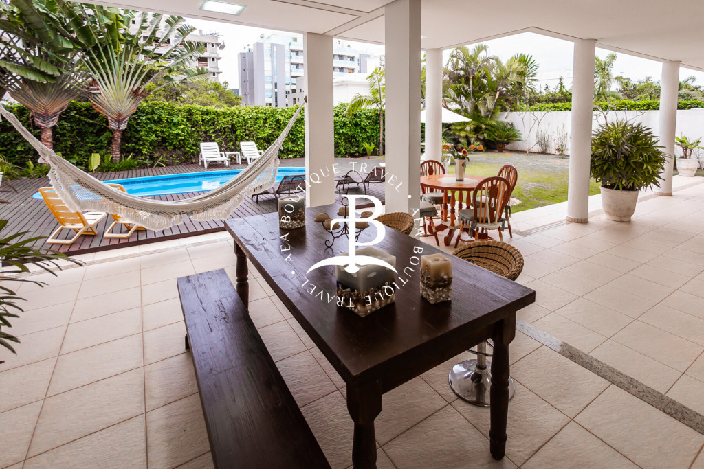 A área externa tem uma deliciosa varanda com mesas e espaço para refeições, churrasqueira, piscina privativa ao ar livre e espreguiçadeiras. Tem tudo que você precisa para férias incríveis com sua família e amigos