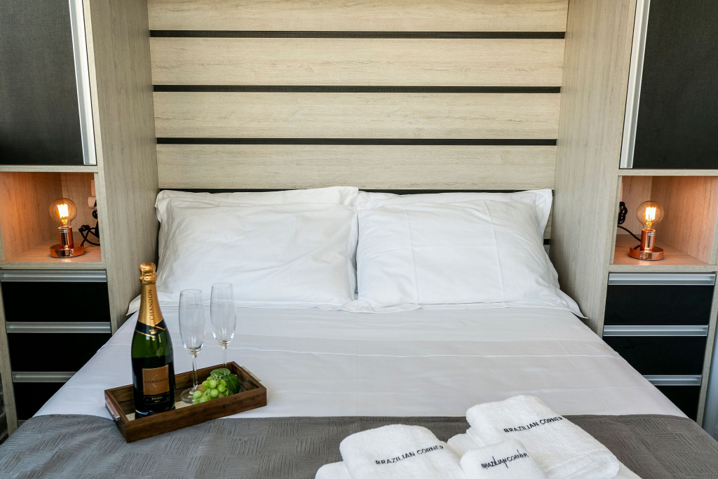 SALA: - Sofá-cama: Com um simples movimento, o sofá-cama se converte em uma superfície ampla e agradável para uma noite de sono tranquila. Seus mecanismos de abertura e fechamento são fáceis de usar, permitindo uma transição suave entre as duas funções, é uma opção prática para acomodar vocês durante a noite. - Smart TV de 40 polegadas: Relaxe e desfrute de uma ampla variedade de entretenimento, no sofá da sala, com nossa Smart TV de alta definição. Assista aos seus filmes e programas favoritos com qualidade excepcional. - Internet Ultra-Veloz: Mantenha-se conectado com o mundo durante sua estadia. Oferecemos acesso à internet de alta velocidade para que você possa compartilhar suas experiências e manter-se atualizado em todos os ambientes. - Mesa de Jantar para 4 pessoas: Compartilhe momentos especiais com amigos e familiares em torno de uma mesa espaçosa e elegante. Nossa mesa de jantar comporta até 4 pessoas, proporcionando um ambiente perfeito para refeições memoráveis. - Fechadura Digital: Priorizamos sua segurança e tranquilidade. Nossa locação conta com uma fechadura digital de alta tecnologia, proporcionando praticidade e evitando a preocupação com chaves. - Ar condicionado: Mantenha-se fresco e confortável durante toda a sua estadia. Nosso imóvel possui ar condicionado para garantir uma temperatura agradável em todos os ambientes. QUARTO: Cada quarto em nossas locações são cuidadosamente decorado e mobiliado, oferecendo conforto e privacidade para todos os inquilinos - Cama de Casal: Relaxe e recarregue suas energias em uma cama de casal confortável. Garantimos noites tranquilas e revigorantes para que você possa aproveitar ao máximo cada segundo de seu sono. - Mesa de Trabalho: Seja para trabalhar remotamente, estudar ou apenas navegar na internet, nossa mesa de trabalho proporciona um espaço confortável e funcional. Mantenha-se produtivo durante suas férias ou viagens de negócios. - Guarda-Roupa: Nosso imóvel oferece um guarda-roupa amplo, permitindo que você organize suas roupas e pertences com facilidade. Desfaça as malas e sinta-se verdadeiramente em casa. COZINHA: - Cozinha muito bem equipada: Prepare deliciosas refeições na nossa cozinha completa e moderna. Equipada com todos os utensílios e eletrodomésticos necessários, você terá liberdade para explorar suas habilidades culinárias. - Taças de vinho: Brinde momentos memoráveis com taças de vinho prontas para receber suas celebrações. - Máquina Nespresso: Desperte seus sentidos com uma xícara de café fresco todas as manhãs. Nossa locação possui uma máquina Nespresso para você saborear a sua bebida preferida. - Máquina Nespresso: Desperte seus sentidos com uma xícara de café fresco todas as manhãs. Em nossa locação, disponibilizamos uma máquina Nespresso para que você possa apreciar a sua bebida preferida. No entanto, é necessário trazer suas próprias cápsulas de café, pois não fornecemos. - Microondas: Prepare suas refeições com praticidade e rapidez, tendo à disposição um micro-ondas moderno e funcional. - Fogão: Sinta-se em casa na nossa cozinha, completa com um moderno fogão, proporcionando a flexibilidade para preparar suas refeições favoritas. Seja um mestre culinário ou alguém que gosta de experimentar novos sabores, você terá tudo o que precisa à sua disposição. BANHEIROS: - Secador de Cabelo: Para sua conveniência, disponibilizamos um secador de cabelo de qualidade em nosso imóvel. Dessa forma, você não precisa se preocupar em trazer o seu, permitindo que você viaje mais leve e confortável. - Chuveiro à Gás: Proporcionando conforto em todos os detalhes, nossos chuveiros são abastecidos com sistema à gás, garantindo um banho quente e relaxante em qualquer momento do dia. ÁREA COMUM: - Vaga de garagem: Oferecemos uma vaga de garagem para sua comodidade e segurança, garantindo que você tenha um local seguro para estacionar seu veículo. - Academia: Se manter ativo e saudável é importante para você, nossa academia moderna está pronta para atender às suas necessidades. Equipada com uma variedade de máquinas de qualidade, você poderá manter sua rotina de exercícios mesmo durante as férias. Mantenha-se em forma e cheio de energia durante toda a sua estadia. - Piscina: Mergulhe, relaxe e aproveite a nossa piscina, oferecendo momentos de alegria e descontração. - Sauna: Após um longo dia, você pode relaxar na sauna para aliviar o estresse. Ela oferece inúmeros benefícios para a saúde, incluindo a melhoria da circulação sanguínea. Com a sauna disponível no prédio, você pode desfrutar destes benefícios. - Lavanderia: Mantenha suas roupas limpas e frescas durante toda a estadia com a máquina lava e seca que o prédio disponibiliza. ADMINISTRAÇÃO DO IMÓVEL: O Imóvel é administrado pela Brazilian Corner, uma empresa nacional que oferece aos seus clientes, que viajam a lazer ou negócios, a experiência de locar imóveis únicos durante uma temporada. As residências são planejadas para prover grande conforto. Nosso escritório fica no bairro Vila Madalena em São Paulo. Desde 2018, a Brazilian Corner é pioneira em seu ramo, pois além de proporcionar imóveis bem estruturados, também é responsável por toda a logística e suprimentos básicos que compõe cada uma de suas residências, o que as torna extremamente funcionais. Nosso grande diferencial é a boa comunicação e a seriedade com que atuamos para resolver qualquer entrave que possa acontecer antes, durante, e/ou após a estadia de nossos clientes. Nossos colaboradores são treinados e têm as ferramentas necessárias para proporcionar um excelente nível de serviço. Os apartamentos e casas são limpos por nossas equipes especializada, a nossa roupa de cama e banho são lavadas e higienizadas em lavanderias profissionais. Mantemos o profissionalismo em tudo o que fazemos para, dessa forma, garantir a tranquilidade e confiança