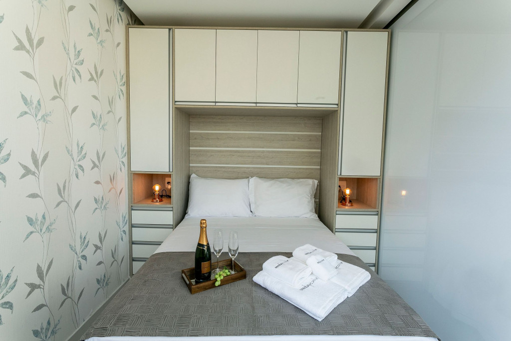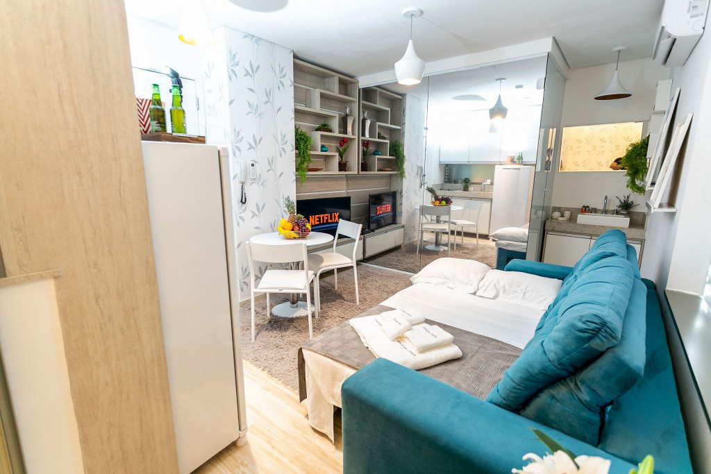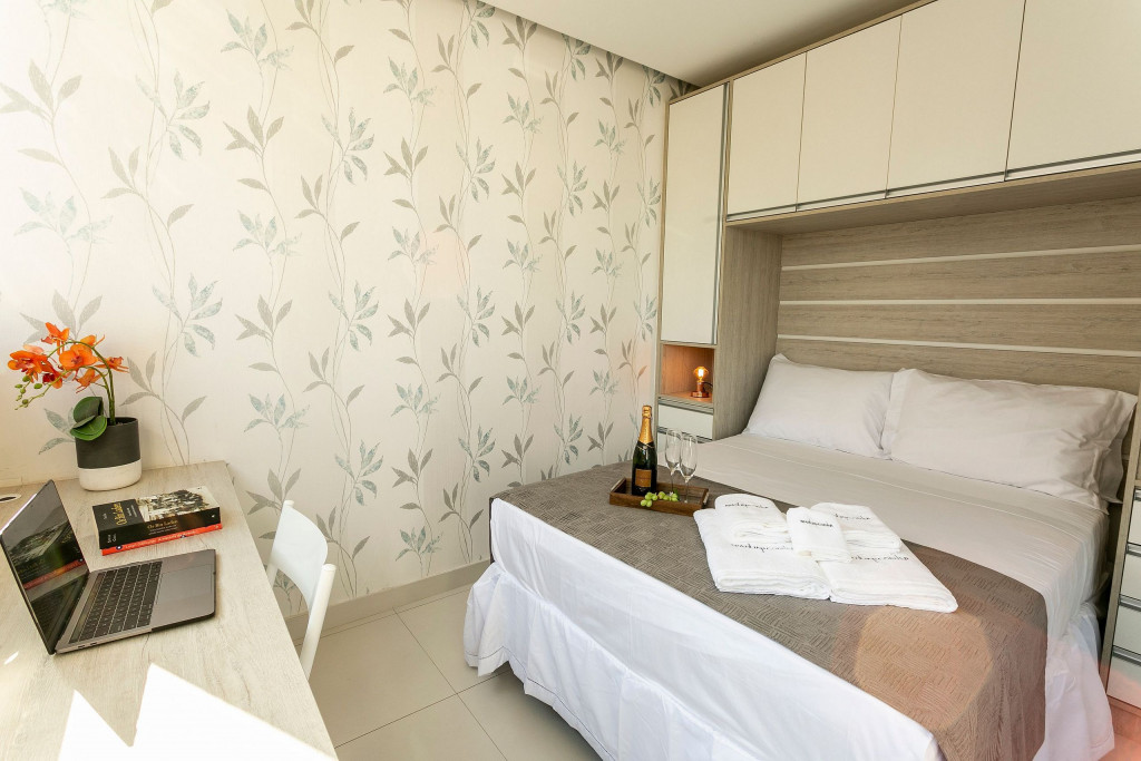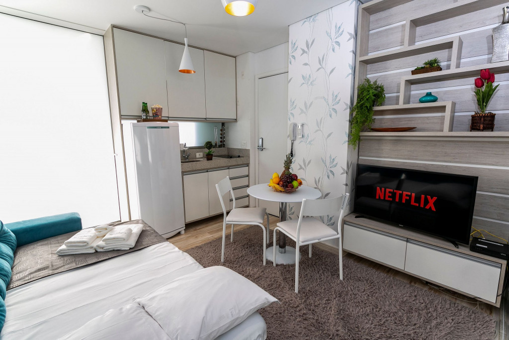 SALA: - Sofá-cama: Com um simples movimento, o sofá-cama se converte em uma superfície ampla e agradável para uma noite de sono tranquila. Seus mecanismos de abertura e fechamento são fáceis de usar, permitindo uma transição suave entre as duas funções, é uma opção prática para acomodar vocês durante a noite. - Smart TV de 43 polegadas: Relaxe e desfrute de uma ampla variedade de entretenimento, no sofá da sala, com nossa Smart TV de alta definição. Assista aos seus filmes e programas favoritos com qualidade excepcional. - Internet Ultra-Veloz: Mantenha-se conectado com o mundo durante sua estadia. Oferecemos acesso à internet de alta velocidade para que você possa compartilhar suas experiências e manter-se atualizado em todos os ambientes. - Mesa de Jantar para 2 pessoas: Compartilhe momentos especiais em nossa mesa de jantar que comporta até 2 pessoas. - Fechadura Digital: Priorizamos sua segurança e tranquilidade. Nossa locação conta com uma fechadura digital de alta tecnologia, proporcionando praticidade e evitando a preocupação com chaves. - Ar condicionado: Mantenha-se fresco e confortável durante toda a sua estadia. Nosso imóvel possui ar condicionado para garantir uma temperatura agradável em todos os ambientes. QUARTO: Cada quarto em nossas locações é cuidadosamente decorado e mobiliado, oferecendo conforto e privacidade para todos os inquilinos - Cama de Casal: Relaxe e recarregue suas energias em uma cama de casal confortável. Garantimos noites tranquilas e revigorantes para que você possa aproveitar ao máximo cada segundo de seu sono. - Cortinas Blackout: Uma boa noite de sono é essencial. Por isso, em todos os quartos da nossa locação, você encontrará cortinas blackout, garantindo um ambiente escuro e silencioso para um descanso revigorante. - Mesa de Trabalho: Seja para trabalhar remotamente, estudar ou apenas navegar na internet, nossa mesa de trabalho proporciona um espaço confortável e funcional. Mantenha-se produtivo durante suas férias ou viagens de negócios. - Guarda-Roupa: Nosso imóvel oferece um guarda-roupa amplo, permitindo que você organize suas roupas e pertences com facilidade. Desfaça as malas e sinta-se verdadeiramente em casa. COZINHA: - Cozinha muito bem equipada: Prepare deliciosas refeições na nossa cozinha completa e moderna. Equipada com todos os utensílios e eletrodomésticos necessários, você terá liberdade para explorar suas habilidades culinárias. - Taças de vinho: Brinde momentos memoráveis com taças de vinho prontas para receber suas celebrações. - Microondas: Prepare suas refeições com praticidade e rapidez, tendo à disposição um micro-ondas moderno e funcional. - Máquina Nespresso: Desperte seus sentidos com uma xícara de café fresco todas as manhãs. Em nossa locação, disponibilizamos uma máquina Nespresso para que você possa apreciar a sua bebida preferida. No entanto, é necessário trazer suas próprias cápsulas de café, pois não fornecemos. - Fogão: Sinta-se em casa na nossa cozinha, completa com um moderno fogão, proporcionando a flexibilidade para preparar suas refeições favoritas. Seja um mestre culinário ou alguém que gosta de experimentar novos sabores, você terá tudo o que precisa à sua disposição. - Microondas: Prepare suas refeições com praticidade e rapidez, tendo à disposição um micro-ondas moderno e funcional. BANHEIRO: - Secador de Cabelo: Para sua conveniência, disponibilizamos um secador de cabelo de qualidade em nosso imóvel. Dessa forma, você não precisa se preocupar em trazer o seu, permitindo que você viaje mais leve e confortável. - Chuveiro à Gás: Proporcionando conforto em todos os detalhes, nossos chuveiros são abastecidos com sistema à gás, garantindo um banho quente e relaxante em qualquer momento do dia. ÁREA COMUM: - Vaga de garagem: Oferecemos uma vaga de garagem para sua comodidade e segurança, garantindo que você tenha um local seguro para estacionar seu veículo. - Academia: Se manter ativo e saudável é importante para você, nossa academia moderna está pronta para atender às suas necessidades. Equipada com uma variedade de máquinas de qualidade, você poderá manter sua rotina de exercícios mesmo durante as férias. Mantenha-se em forma e cheio de energia durante toda a sua estadia. - Piscina: Mergulhe, relaxe e aproveite a nossa piscina, oferecendo momentos de alegria e descontração. - Lavanderia: O prédio possui uma lavanderia totalmente equipada, proporcionando praticidade e comodidade para os nossos inquilinos. - Sauna: Após um longo dia, você pode relaxar na sauna para aliviar o estresse. Ela oferece inúmeros benefícios para a saúde, incluindo a melhoria da circulação sanguínea. Com a sauna disponível no prédio, você pode desfrutar destes benefícios. ADMINISTRAÇÃO DO IMÓVEL: O Imóvel é administrado pela Brazilian Corner, uma empresa nacional que oferece aos seus clientes, que viajam a lazer ou negócios, a experiência de locar imóveis únicos durante uma temporada. As residências são planejadas para prover grande conforto. Nosso escritório fica no bairro Vila Madalena em São Paulo. Desde 2018, a Brazilian Corner é pioneira em seu ramo, pois além de proporcionar imóveis bem estruturados, também é responsável por toda a logística e suprimentos básicos que compõe cada uma de suas residências, o que as torna extremamente funcionais. Nosso grande diferencial é a boa comunicação e a seriedade com que atuamos para resolver qualquer entrave que possa acontecer antes, durante, e/ou após a estadia de nossos clientes.Nossos colaboradores são treinados e têm as ferramentas necessárias para proporcionar um excelente nível de serviço. Os apartamentos e casas são limpos por nossas equipes especializada, a nossa roupa de cama e banho são lavadas e higienizadas em lavanderias profissionais. Mantemos o profissionalismo em tudo o que fazemos para, dessa forma, garantir