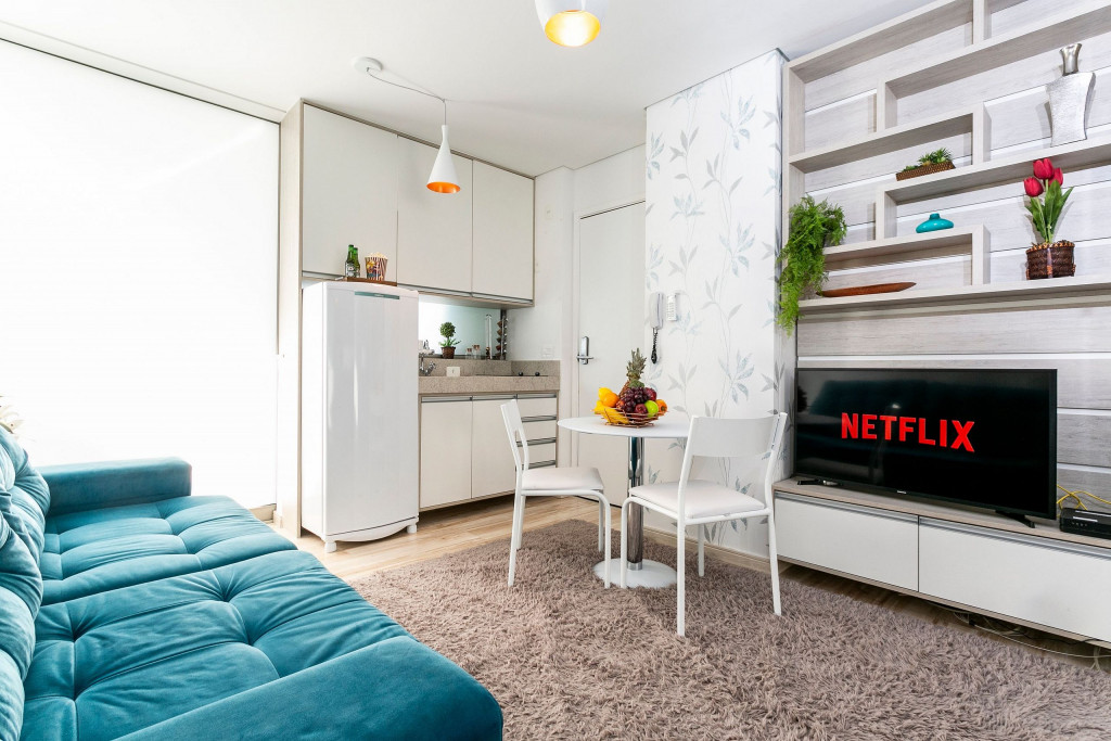 Apartamento moderno localizado no Itaim Bibi, bairro nobre e cultural. Oferece o espaço ideal para uma temporada perfeita na cidade de São Paulo. Ele é muito bem equipado com Smart TV com Netflix, cortina blackout, fechadura digital, ar condicionado, internet ultra-veloz, cozinha completa com todos os utensílios necessários e uma máquina Nespresso, o banheiro conta com um ótimo secador de cabelo e chuveiro a gás. O prédio disponibiliza piscina, academia, lavanderia, sauna e vaga de garagem.