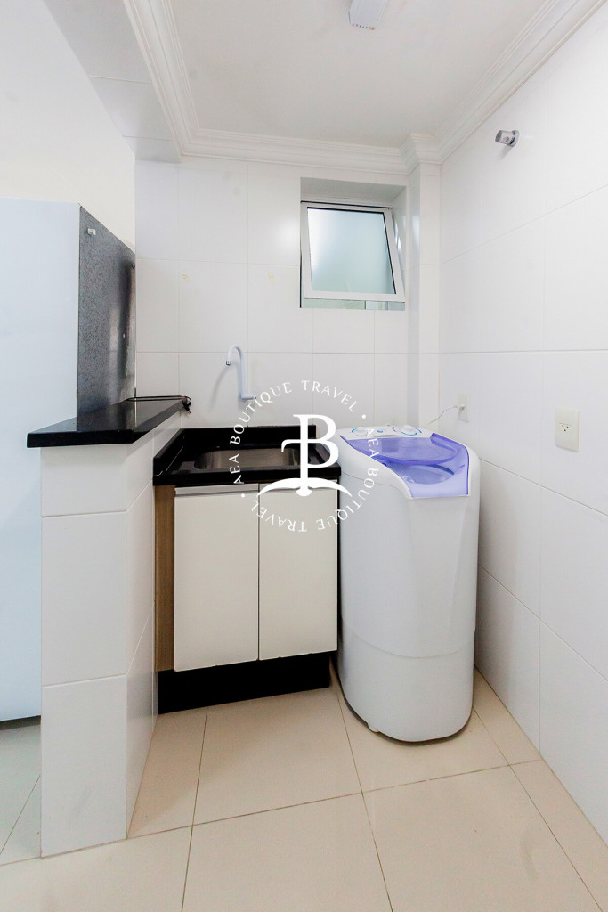 Possui sala de convivência, cozinha completa e bem equipada com todos os utensílios necessários para uma estada com muito conforte, além de uma área de serviço com lavanderia e 1 banheiro completo.