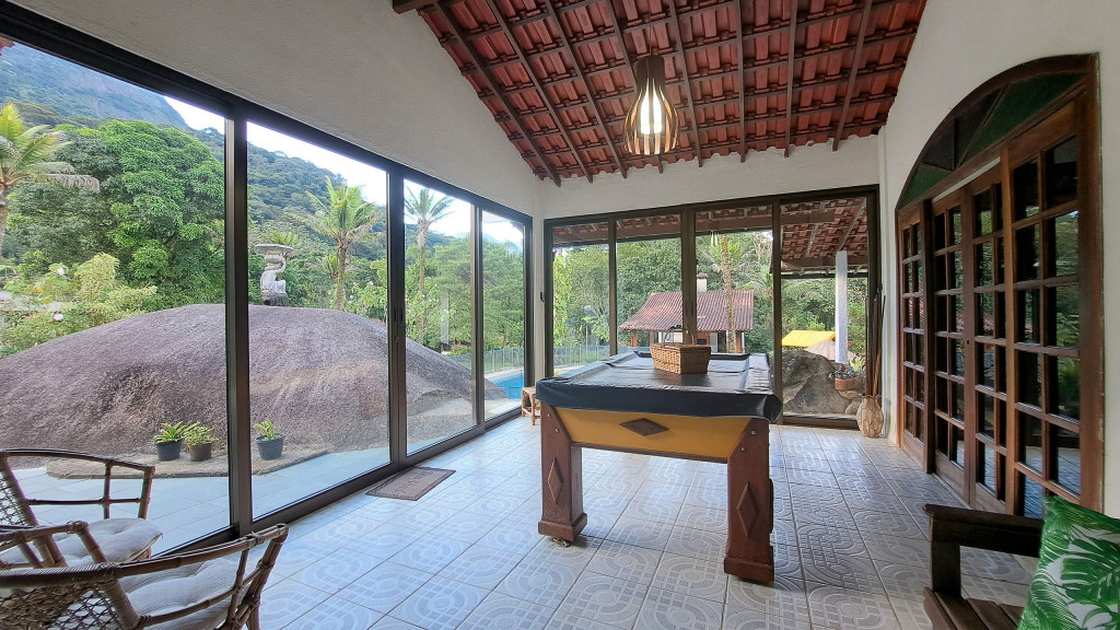Na parte íntima da casa, temos duas suítes e um quarto com banheiro em frente. Além disso, a casa conta com lareira, sala de TV e uma sala de sinuca com uma vista maravilhosa das montanhas.