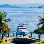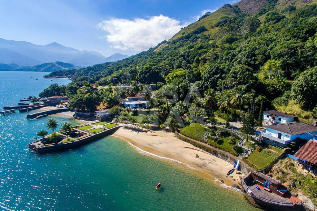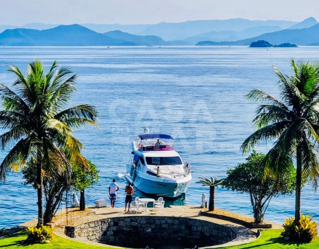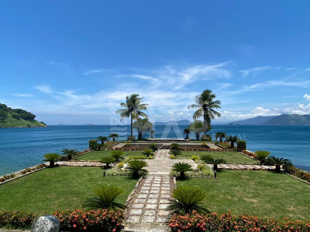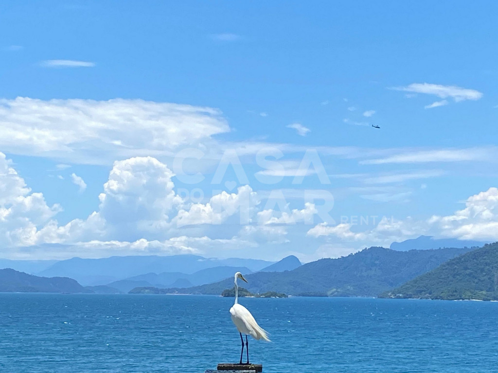 A casa dispõe de 8 suítes completas com roupas de cama, toalhas de banho, piscina com bar e hidromassagem, churrasqueira com forno e fogão a lenha, salão de jantar todo em vidro com linda vista mar, mobiliário externo, redes entre coqueiros, espreguiçadeiras, mesas e cadeiras, bar na praia, garagem coberta para 2 carros e área descoberta para mais 4 carros e píer de atracação para embarcação.-Água e luz pago a parte.
