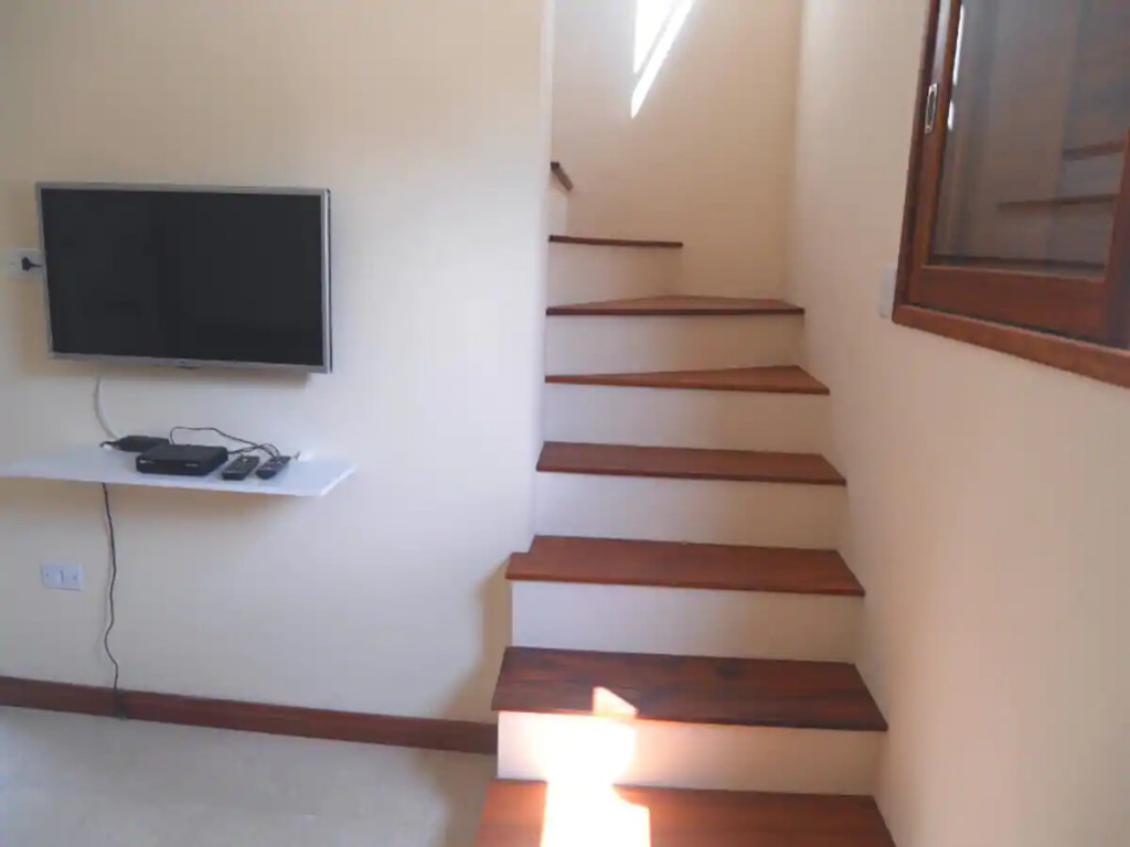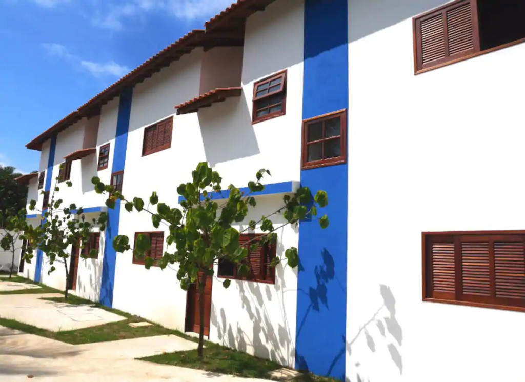 Um quarto com AC, sala com sofá-cama, cozinha com churrasqueira interna, Smart TV, Internet, vaga de carro interna, alarme, a 150 m da praia do Jabaquara. Estamos em pequeno condomínio fechado, na do Praia do Jabaquara.
