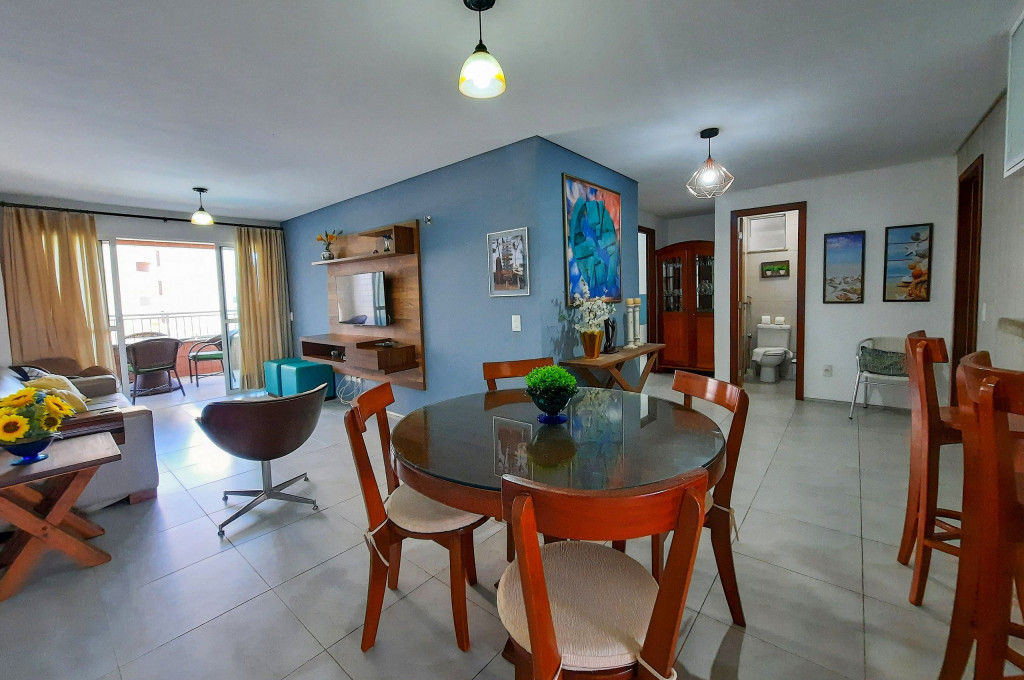 VIZNHO AO BEACH PARK \O/ Apartamento de 105 m², PÉ NA AREIA, localizado no 2° andar. Com ampla varanda com mobília, vista piscina. 3 suítes com ar condicionado. Sala em dois ambientes (sala de estar e jantar) e lavabo. Acesso via fechadura eletrônica. A cozinha é completa, com: geladeira duplex frost free, fogão 4 bocas, forno, sanduicheira, cafeteira, microondas, liquidificador e demais utensílios de cozinha. Disponível wi-fi de alta velocidade, 01 vaga na garagem e enxoval completo (cama, mesa e banho). Acomoda perfeitamente até 7 pessoas (incluindo crianças). Não aceitamos PET (animais de estimação).
