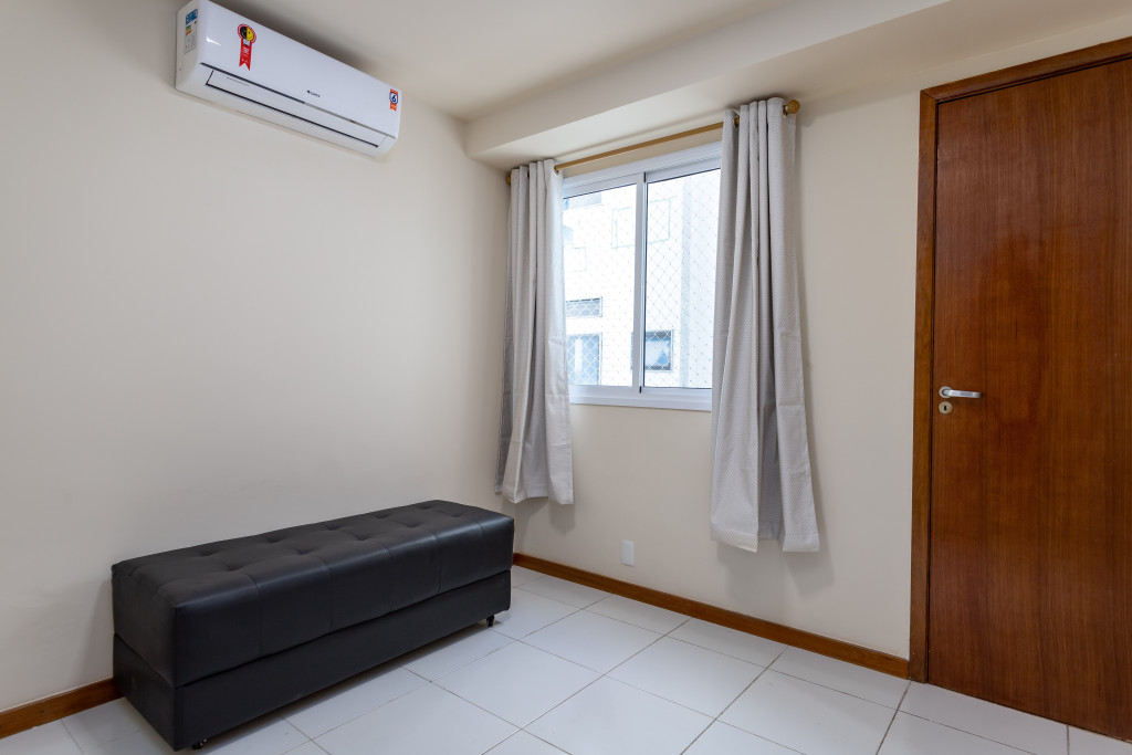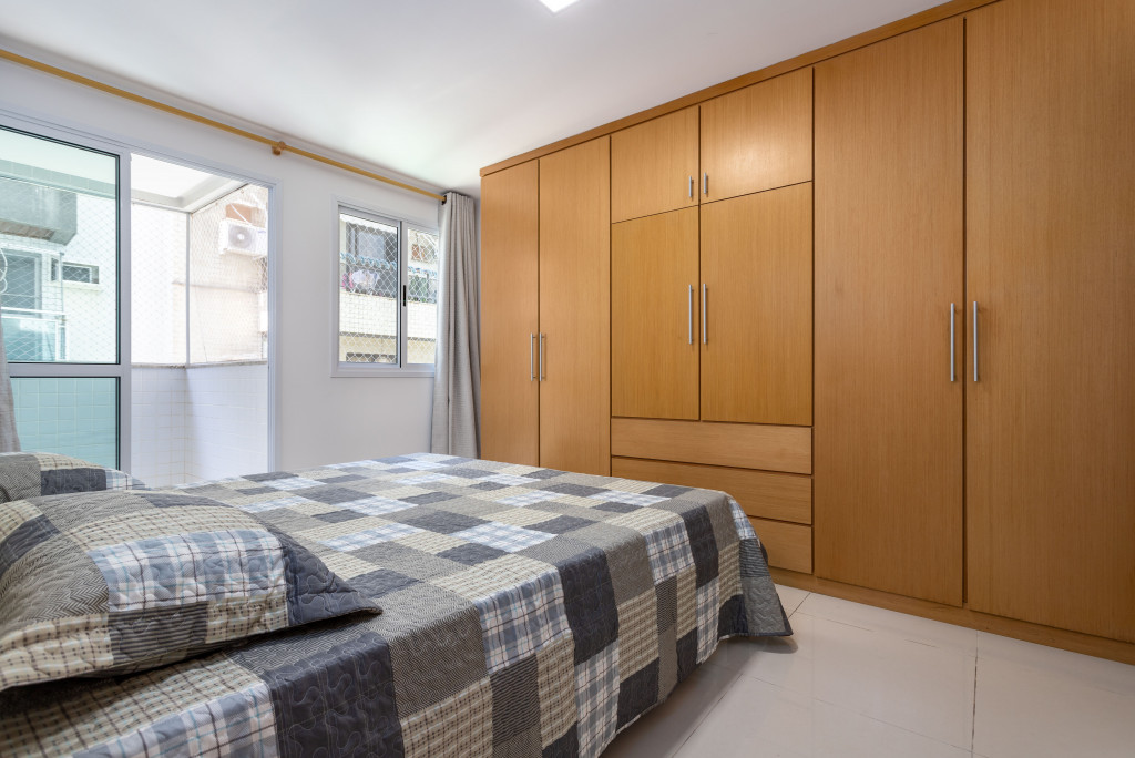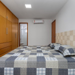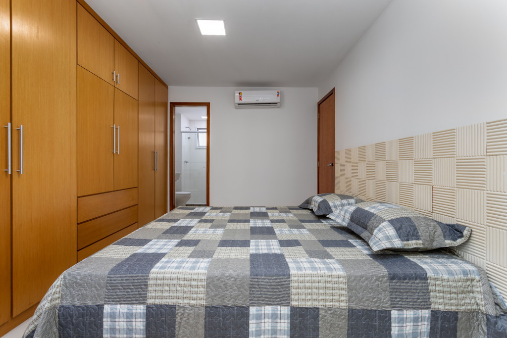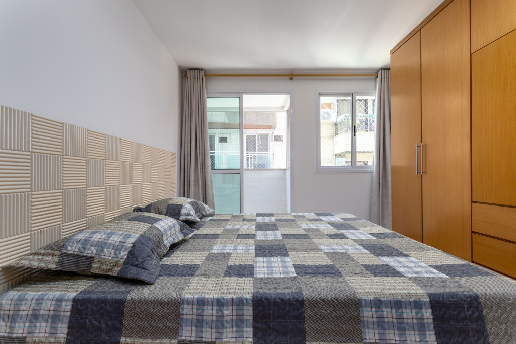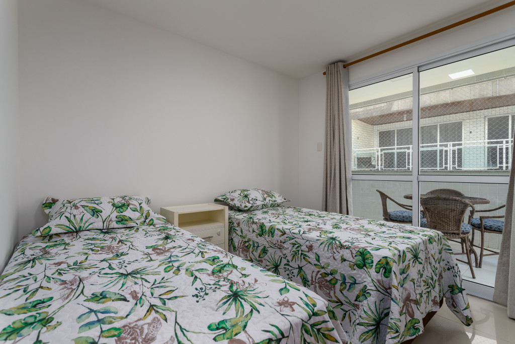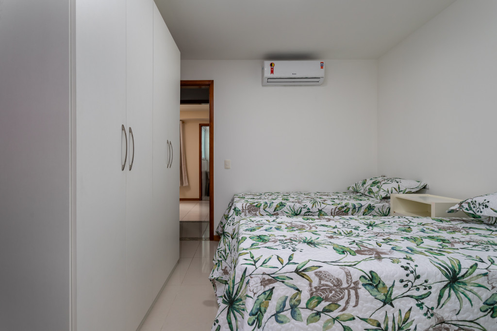 Suite com cama de casal King size e amplo guarda roupas. O outro quarto tem 02 cama de solteiro e guarda roupas.