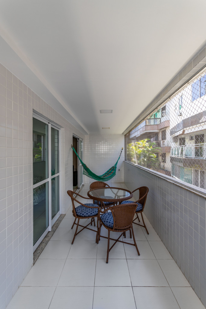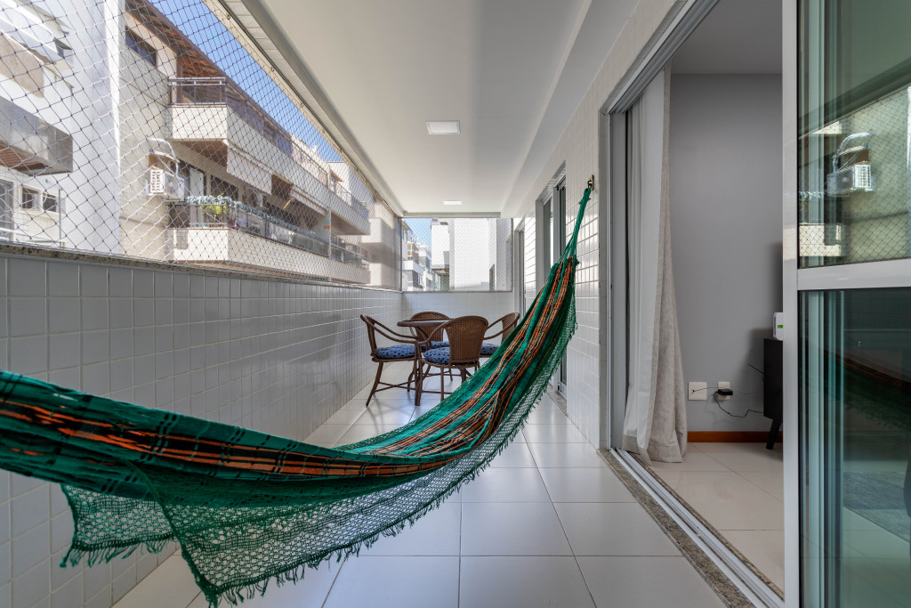 Varanda com tela de proteção, rede para descancar e ambiente ótimo para home office.