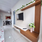 Este quarto e sala é bastante funcional: na sala, a smart TV 32" novinha vai no Rack. Há cortina blackout para melhor conforto (térmico e ocular) e um sofá cama.