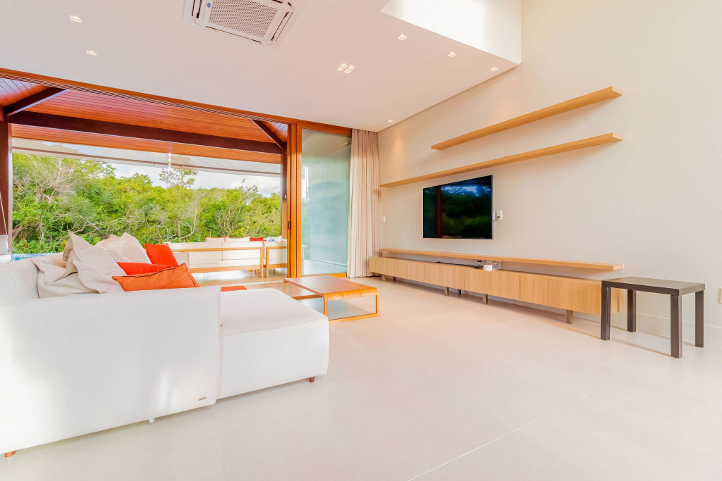 Empreendimento de alto padrão, localizado no Condomínio Praia Bella, com acesso exclusivo à praia! São 5 suítes e sala de estar climatizados, Wi-fi e cozinha completa! Além disso, possui excelente espaço externo com deck, piscina e churrasqueira.No condomínio você poderá desfrutar de quadras poliesportivas, espaço infantil, clube de alto padrão com piscinas, bar, salão de festas, churrasqueira, academia e um moderno sistema de segurança.