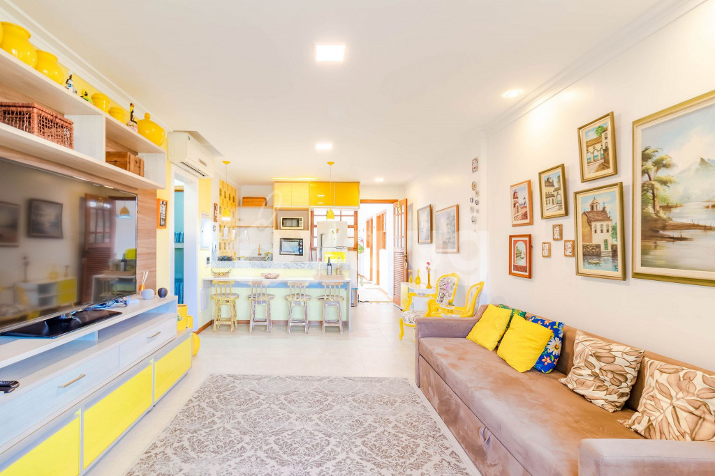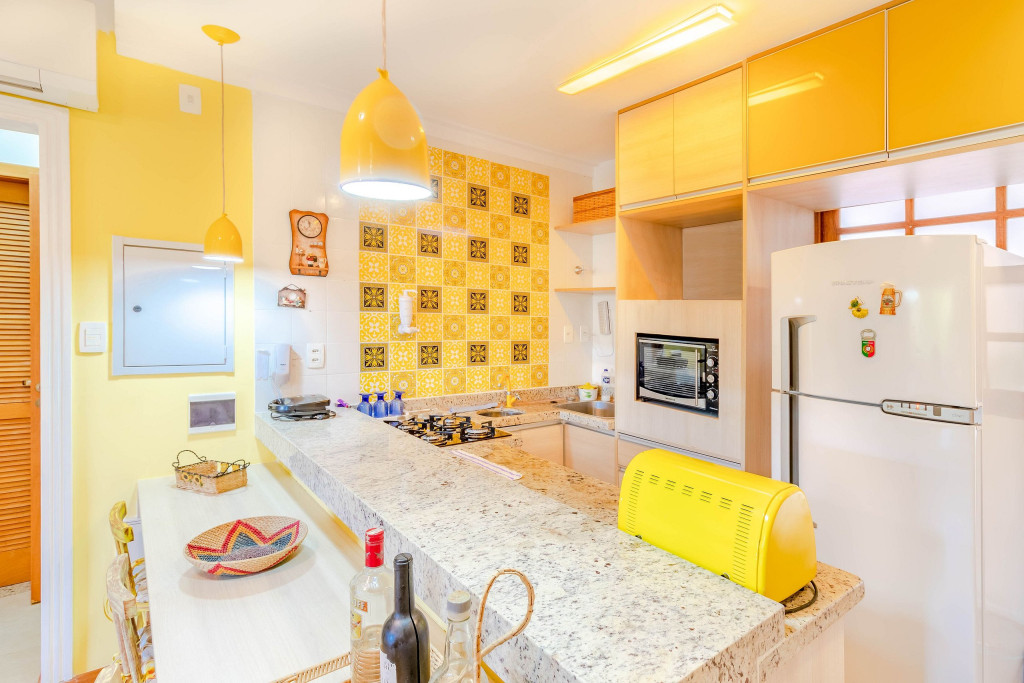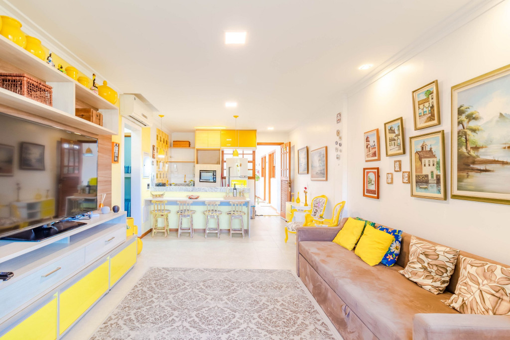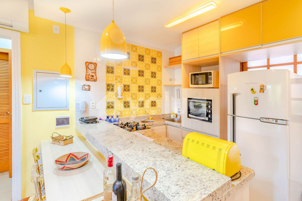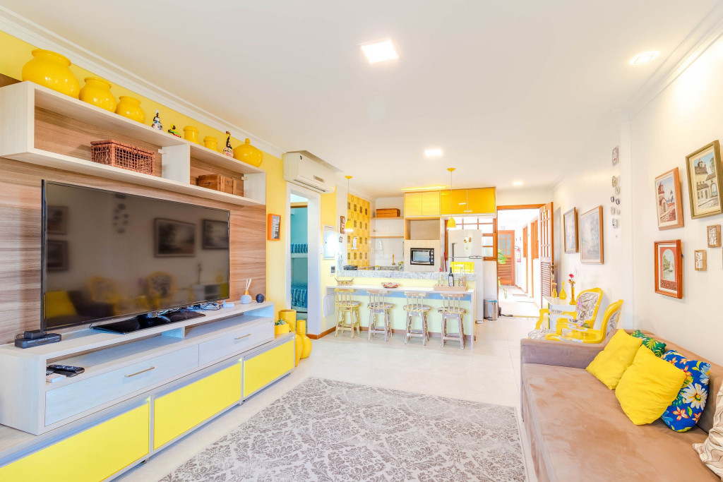 Localizado no 1º andar, o meu espaço dispõe de 2 quartos (1 suíte) com ar condicionado, sala de estar climatizada com sofá-cama, além da cozinha estilo americana, tornando o ambiente bem integrado! O imóvel ainda conta com uma varanda com assentos e uma rede para descanso.A composição dos quartos é da seguinte forma: