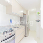 O espaço possui sala de estar e quarto climatizados, Smart TV, cozinha completa e varanda.