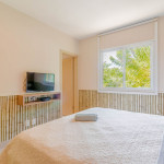 A composição dos quartos é da seguinte forma:Suíte 1 (Térreo): 1 beliche com cama auxiliar, ar condicionado tipo split e cortina blackout;Suíte 2 (Superior): 1 cama king, ar condicionado tipo split, cortina blackout, armário e Smart Tv;Quarto 1 (Superior): 1 beliche, 1 cama solteiro, ar condicionado tipo split, cortina blackout e armário;Quarto 2 (Superior): 2 camas solteiro, ar condicionado tipo split e cortina blackout.
