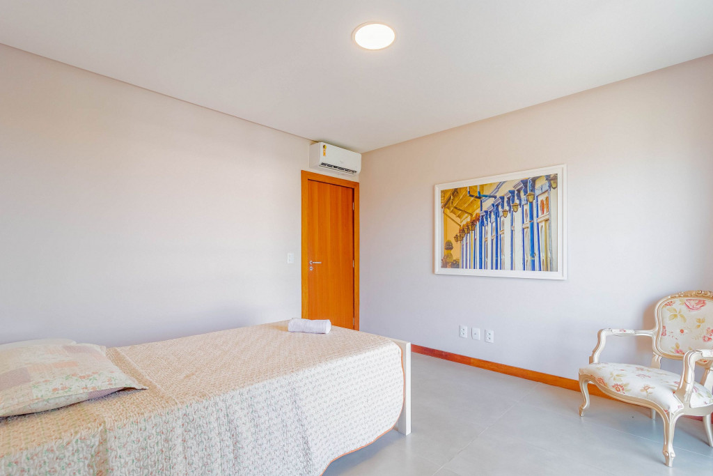A composição dos quartos é da seguinte forma:Suíte 1 (Térreo): 1 cama casal, ar condicionado split e cortina blackout;Suíte 2 (Superior): 1 cama queen, ar condicionado split, cortina blackout e armário;Suíte 3 (Superior): 1 cama casal, ar condicionado split e cortina blackout;Quarto 1 (Superior): 1 cama solteiro, ar condicionado split e cortina blackout.