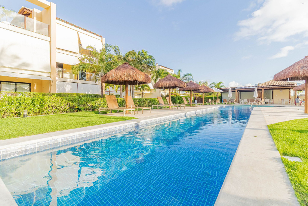 O resort é fechado, com segurança 24 horas! Além disso, possui Clube de Praia, acesso às lojas dos hotéis, farmácia, área infantil, área de lazer esportivo com quadras de tênis e squash e piscinas.