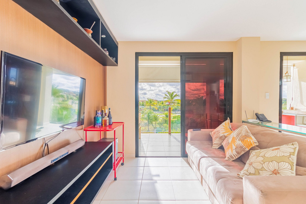 Ótimo apartamento, localizado no Condomínio Ilha do Mediterrâneo, de frente para a bela lagoa e a poucos metros da área comercial do resort. A 650m da Praia, com acesso exclusivo, o Condomínio dispõe de piscinas, academia climatizada, parque infantil, quadra poliesportiva, campo de golf, bicicletário e clube de praia com restaurante-bar.