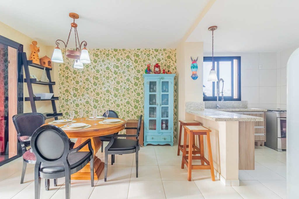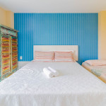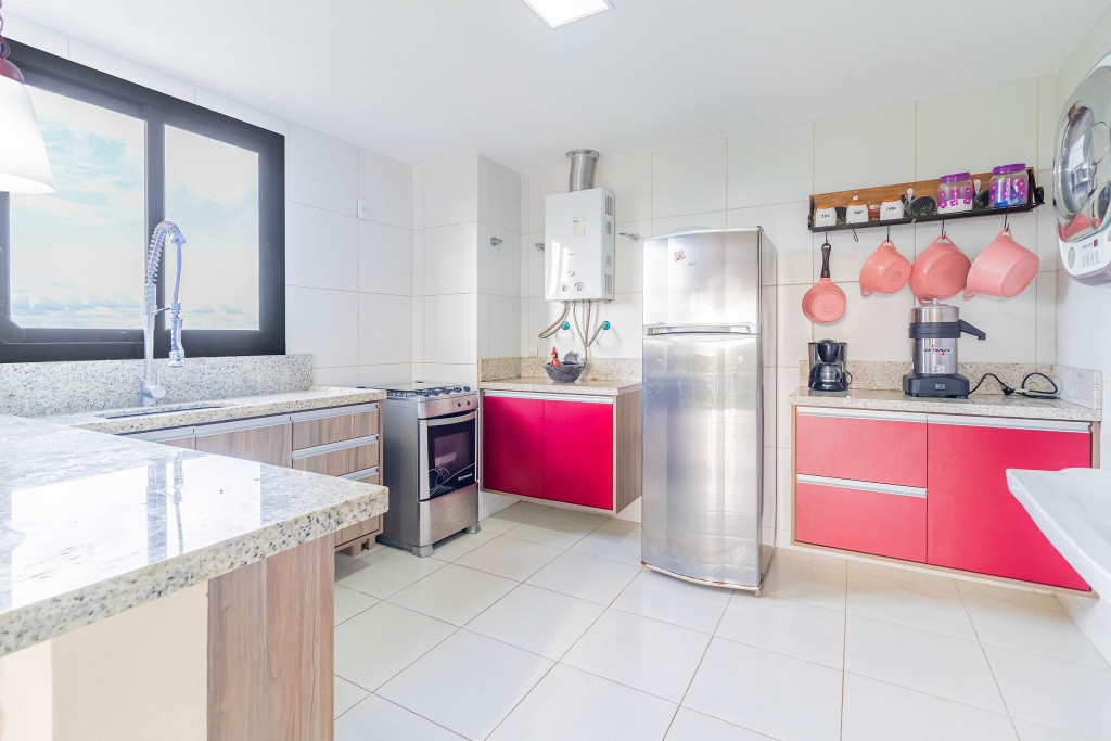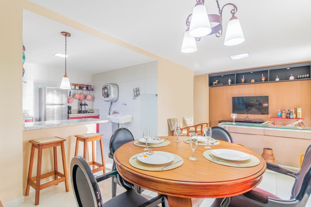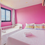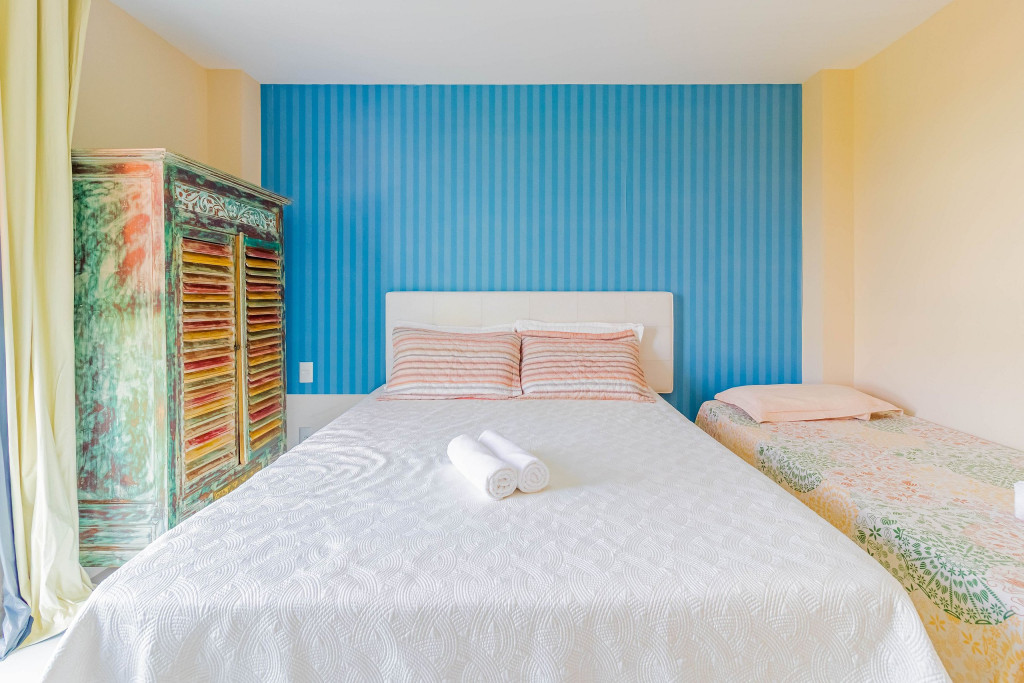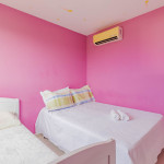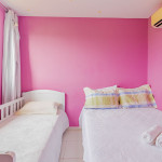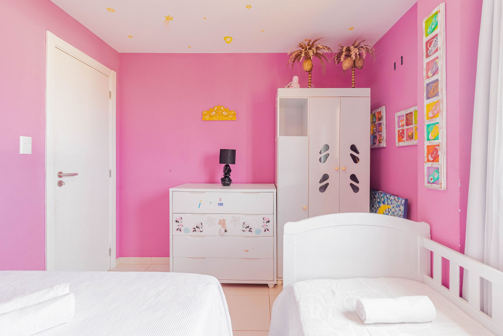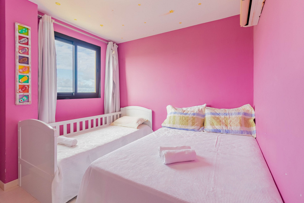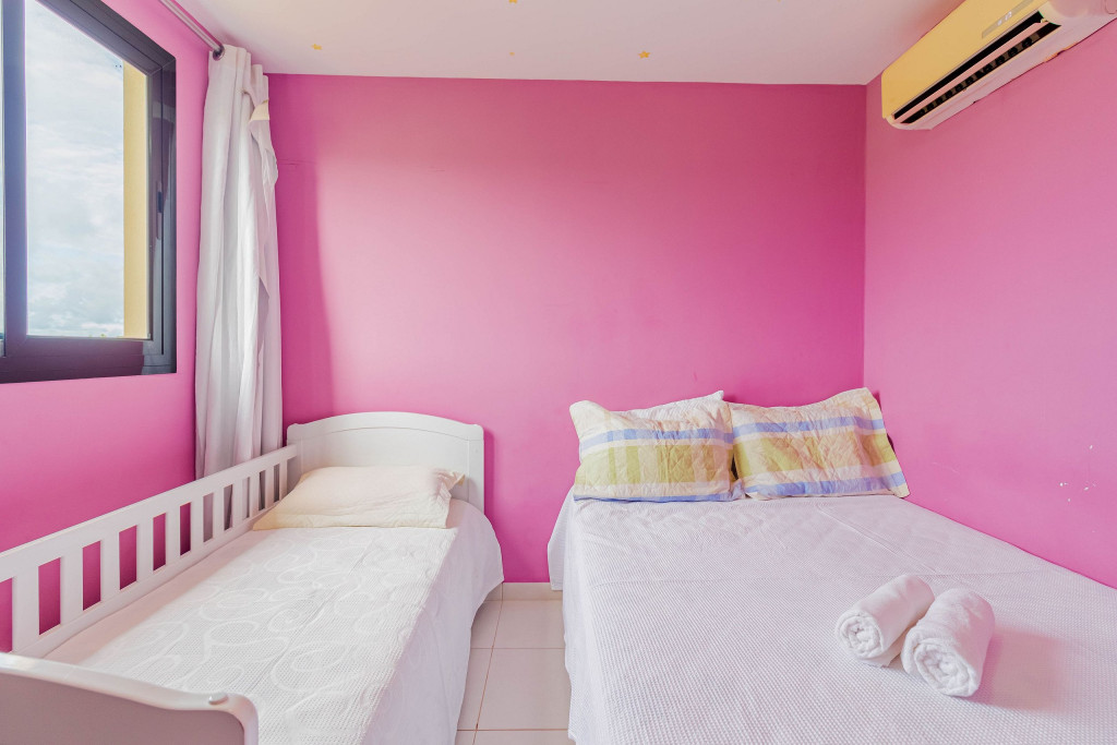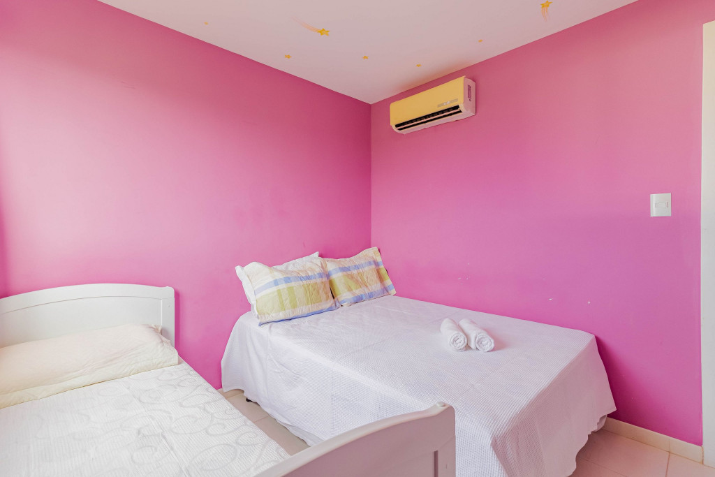 A composição dos quartos é da seguinte forma:Quarto 1: 1 cama casal, 1 cama infantil, ar condicionado split, cortina blackout e armário;Suíte 1: 1 cama queen, 1 bicama, ar condicionado split, cortina blackout e armário.