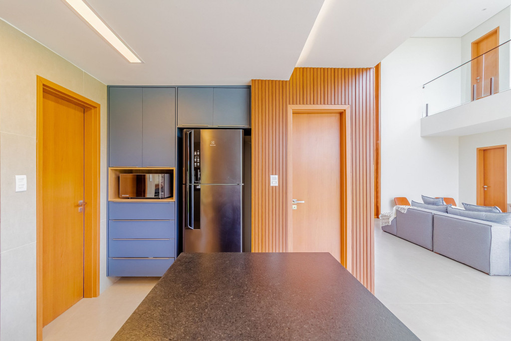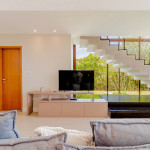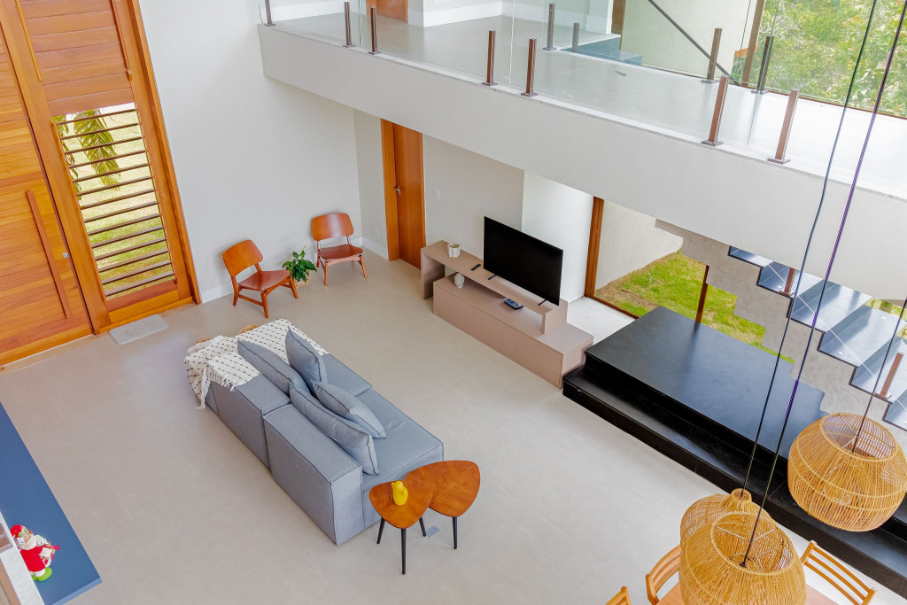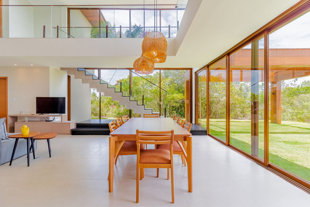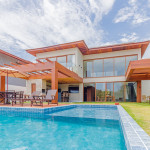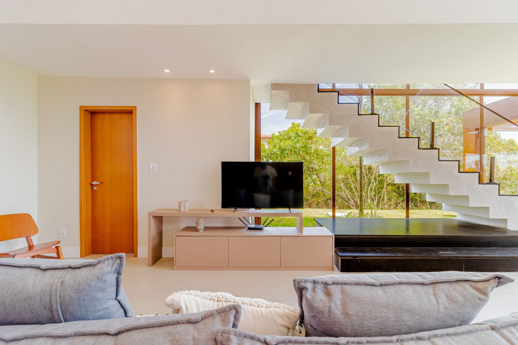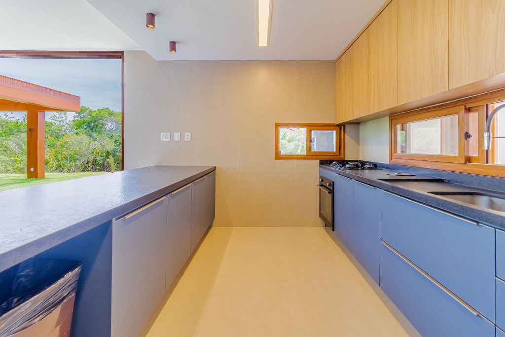 Acomoda até 14 pessoas e conta com 5 suítes (2 no andar térreo), cozinha completa integrada com a sala de estar aconchegante e com o exterior da casa, que inclusive é a melhor parte da casa, com piscina, jardim e área gourmet com churrasqueira.