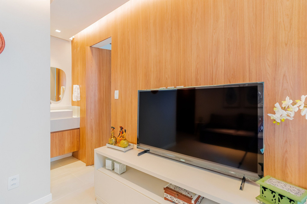 O quarto é composto por 1 cama casal, 2 colchões solteiro, ar condicionado split, armário, cortina blackout e Smart Tv.Além disso, possuímos um sofá-cama na sala de estar, acomodando mais 2 pessoas.