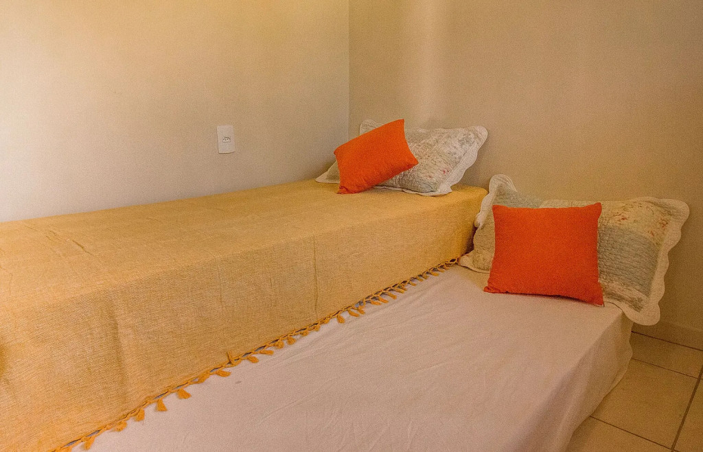2º Quarto com uma bi cama de solteiro (colchões mais rígidos), ventilador de teto, disponibilizamos 1 colchão extra . No segundo andar temos ainda mais um banheiro com box blindex.