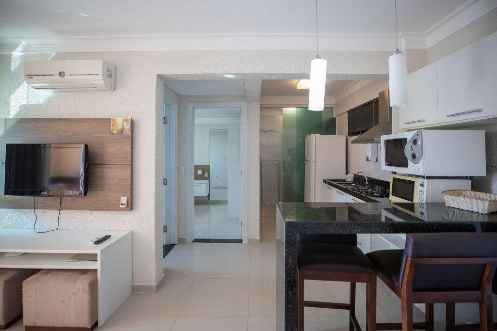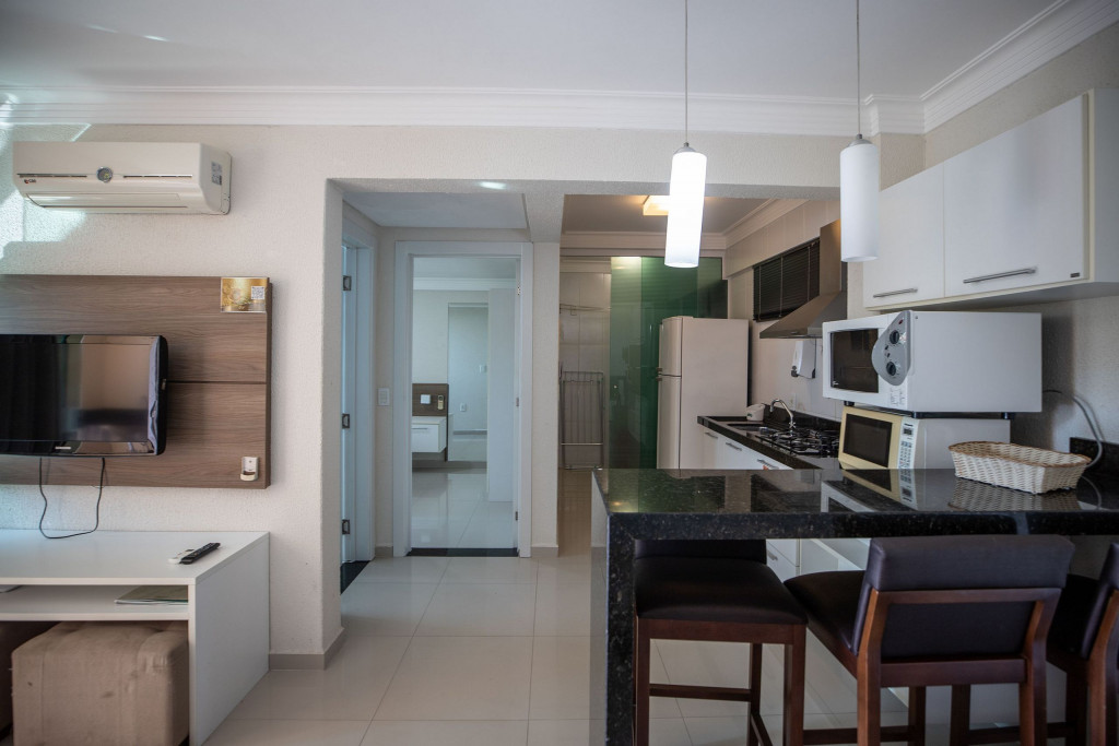 Apartamento aconchegante localizado em um luxuoso condomínio com estrutura completa. Localizado a 350 metros da praia.