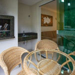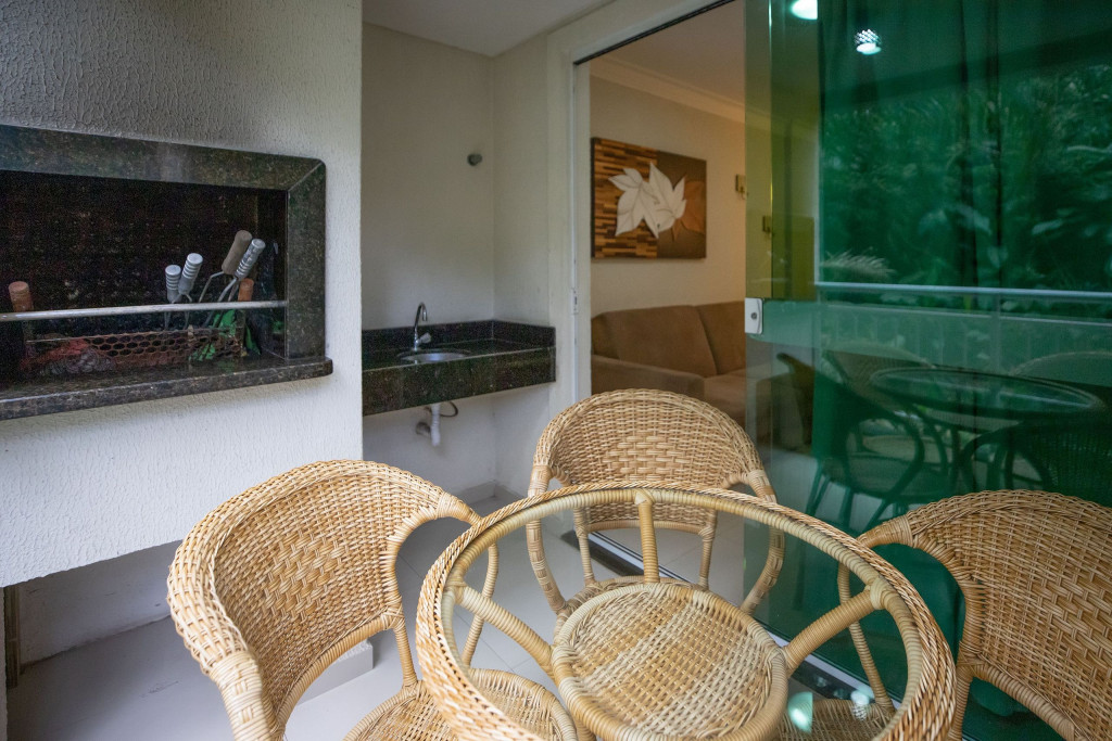 .Sacada com mesa, cadeiras e churrasqueira (espetos)