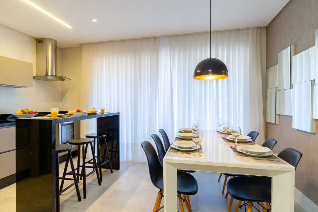 O apartamento 102 do Edifício Porto Madero acomoda até 08 pessoas (capacidade máxima incluindo crianças de qualquer idade) em 3 quartos, sendo uma suíte com cama de casal, quarto com cama de casal e quarto com 04 camas de solteiro. Todos dispõem de ar-condicionado. O imóvel possui cozinha completa e equipada, área de serviço, sala de estar e jantar, banheiro social e sacada com churrasqueira (solicite inventário completo para nossa equipe).Para comodidade de nossos hóspedes, também oferecemos:- Wi-Fi com excelente velocidade;