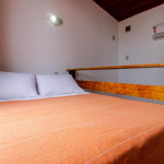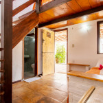 Ideal para casais com um filho ou solteiros, o mesmo dispõe de uma cama de solteiro no primeiro piso e subindo as escadas no mezanino possui uma cama de casal.