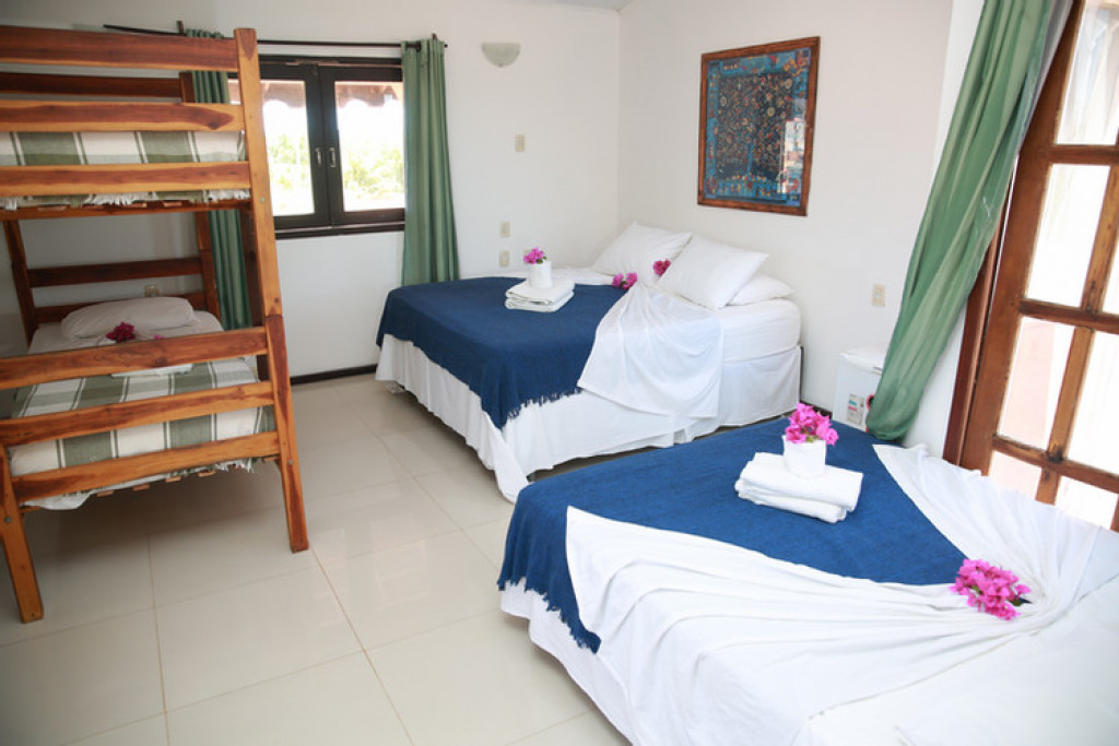 Encontra-se no segundo andar da pousada onde possui 2 camas de casal e uma beliche!