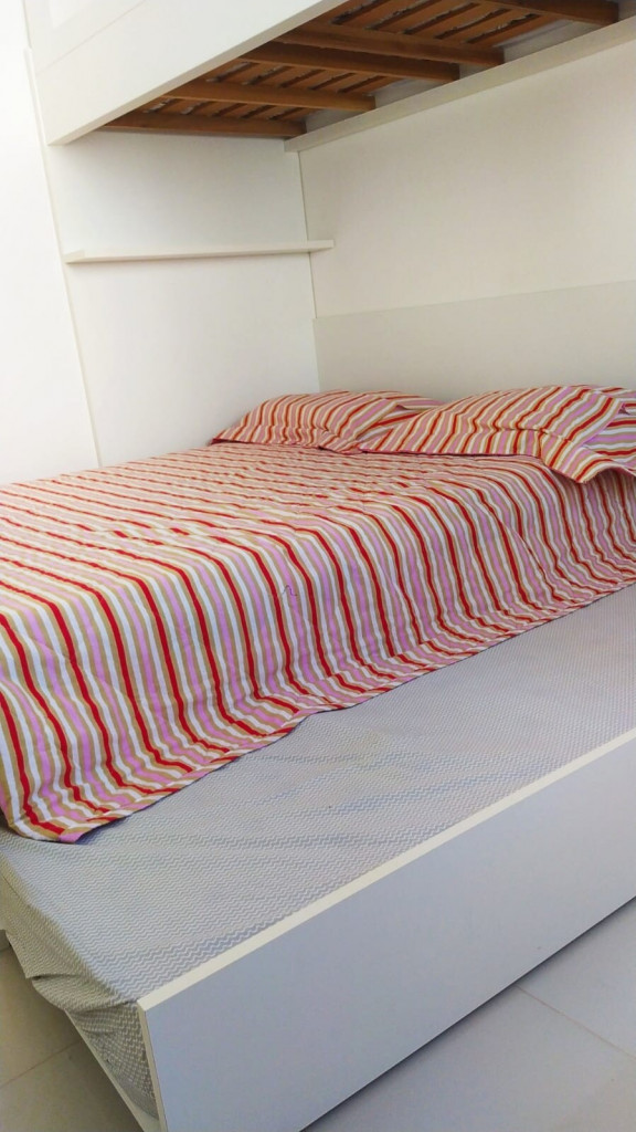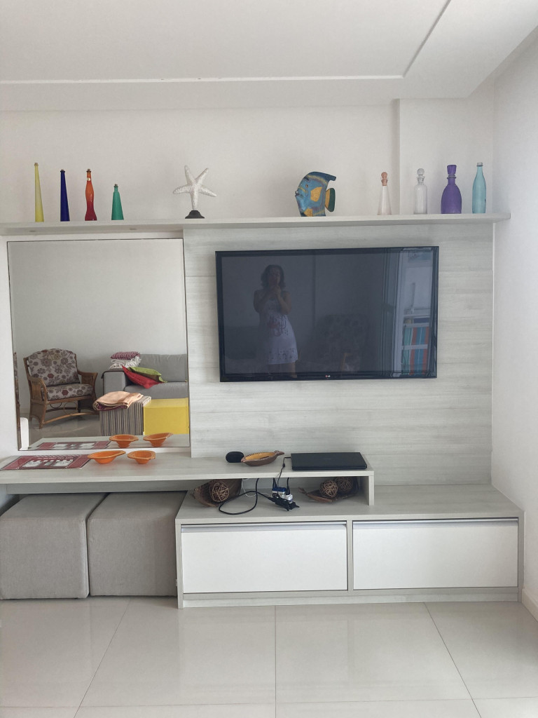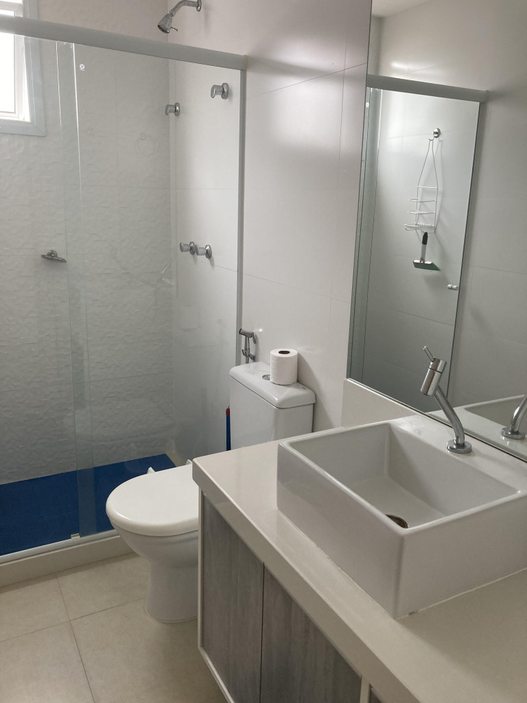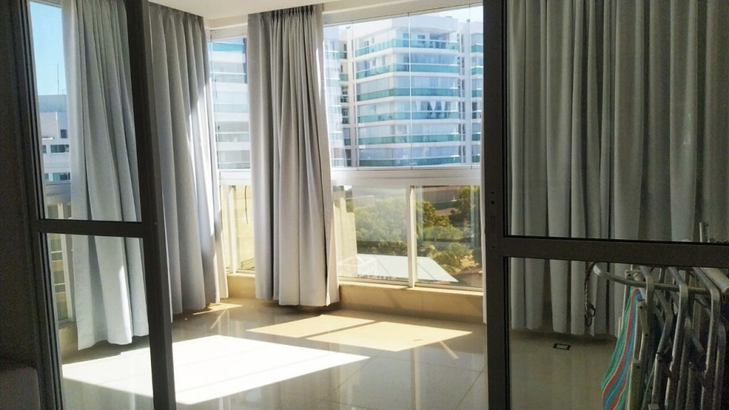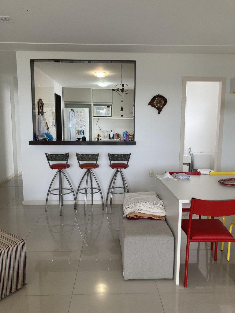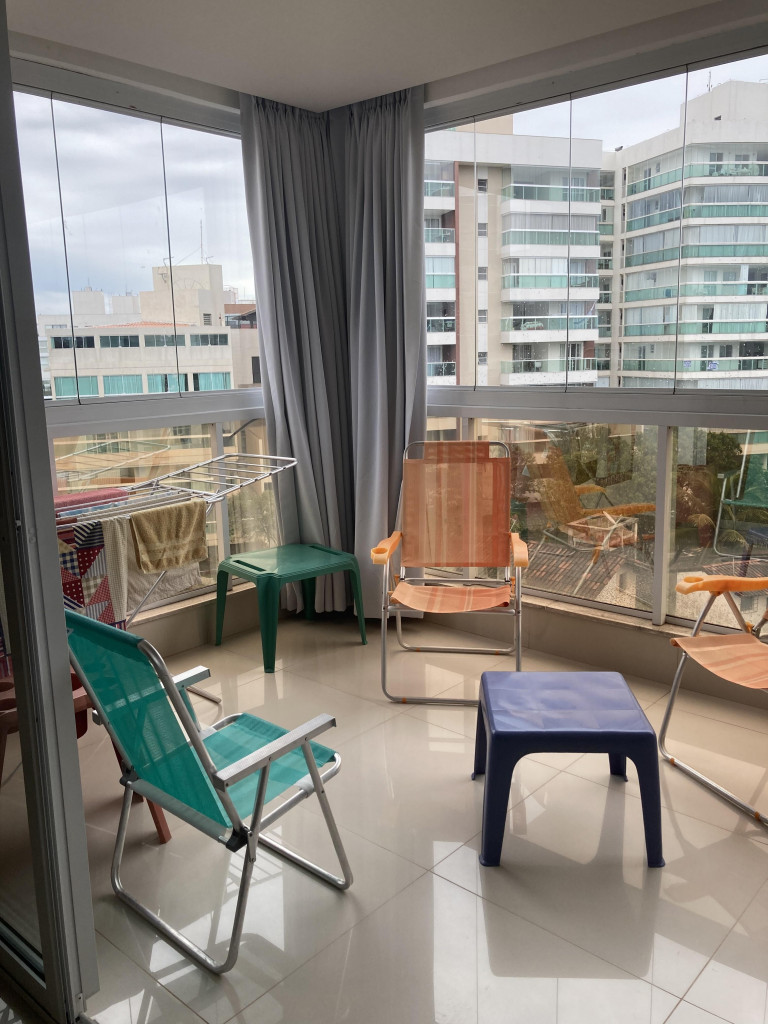 Apto de 3 quartos (um é suíte), com ar condicionado nos 3 quartos, um banheiro social, um lavabo, varanda com linda vista, cozinha equipada, máquina de lavar, prédio com piscina aquecida. É só atravessar a rua e já está na praia. O apto fica na praia da Peracanga, que fica entre a praia da Guaibura e a praia da Bacutia. O imóvel fica no bairro Enseada Azul, a 6 km ao sul de Guarapari.