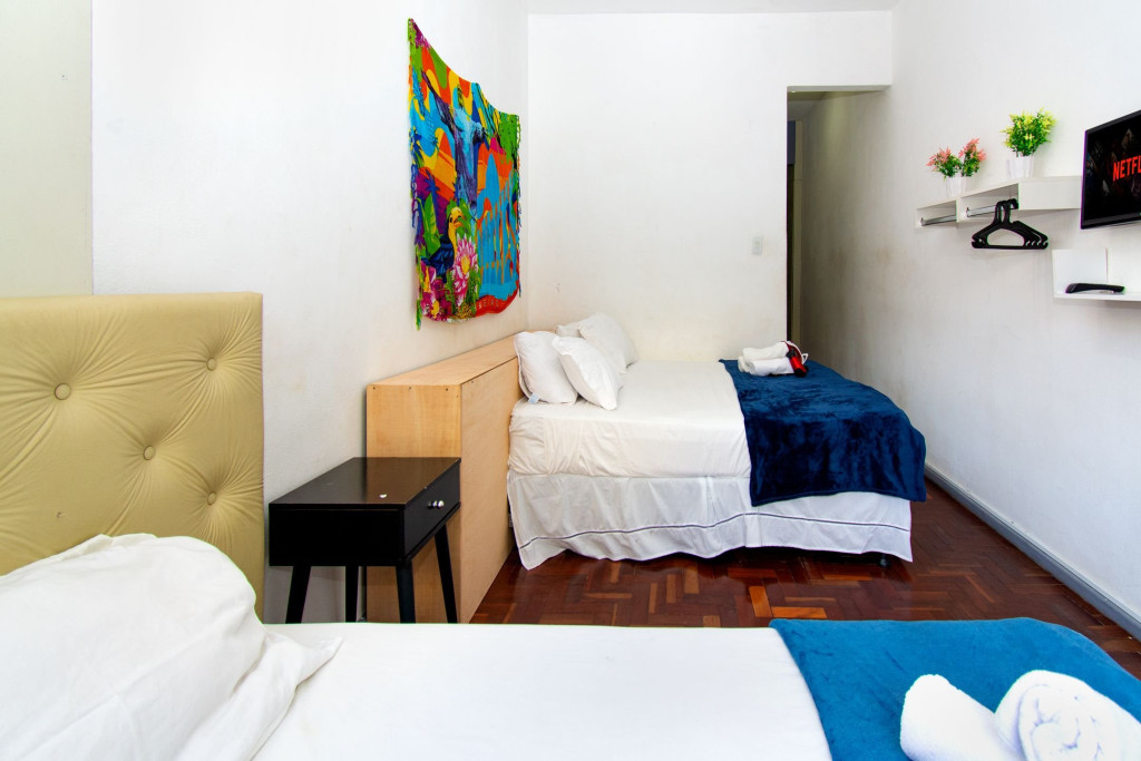 Copacabana é um bairro que funciona 24h e é muito charmoso! Você se hospedará a poucos metros de uma das praias mais conhecidas do mundo, terá todos os comércios locais que precisar farmácias, mercados, lojinhas, feira livre, isso sem contar os principais transportes da cidade: táxi, uber, ônibus e metrô. Dos aeroportos até aqui são cerca de 20 min do SDU e 50 min do GIG. No entorno há restaurantes desde baratos a charmosos, além de mercados, farmácias, lojas e tudo o que você possa precisar de um bairro comum, praticamente 24h por dia. Conte conosco para o que precisar de bilhetes ou tirar dúvidas sobre a cidade!