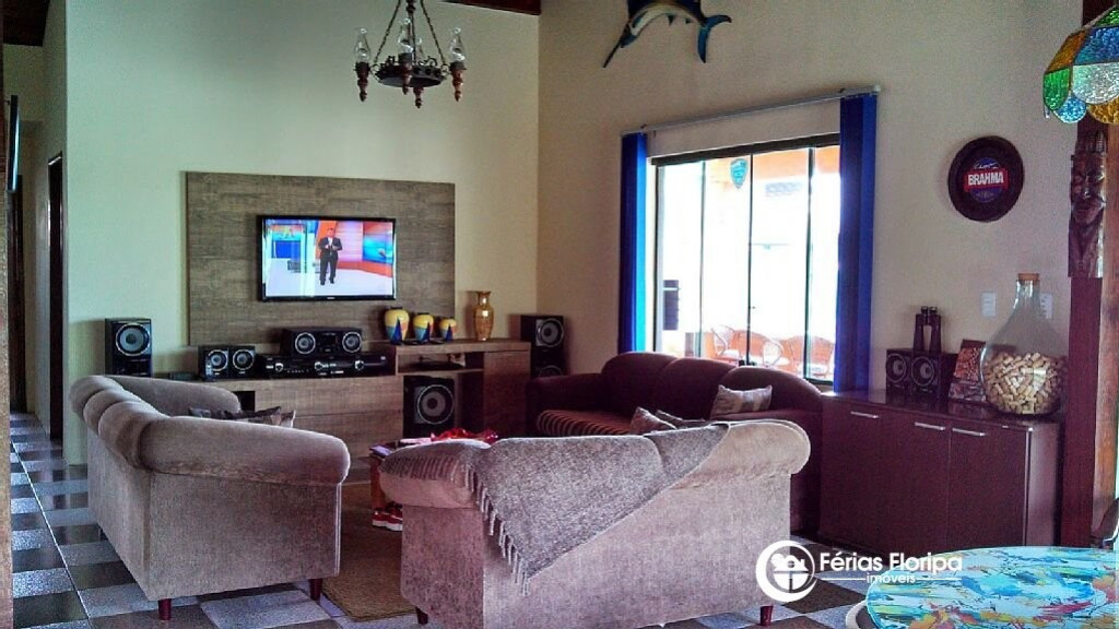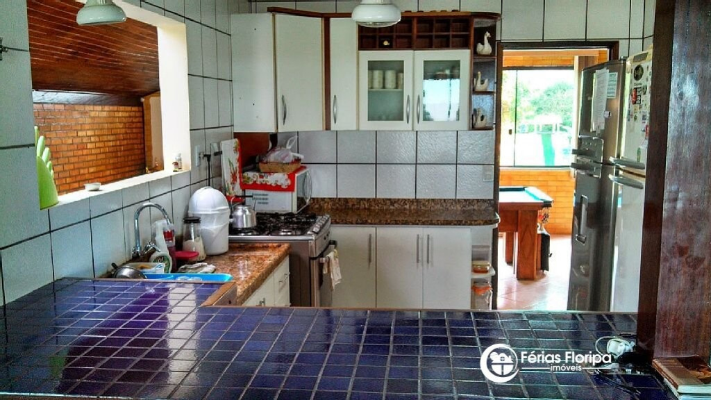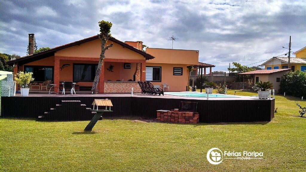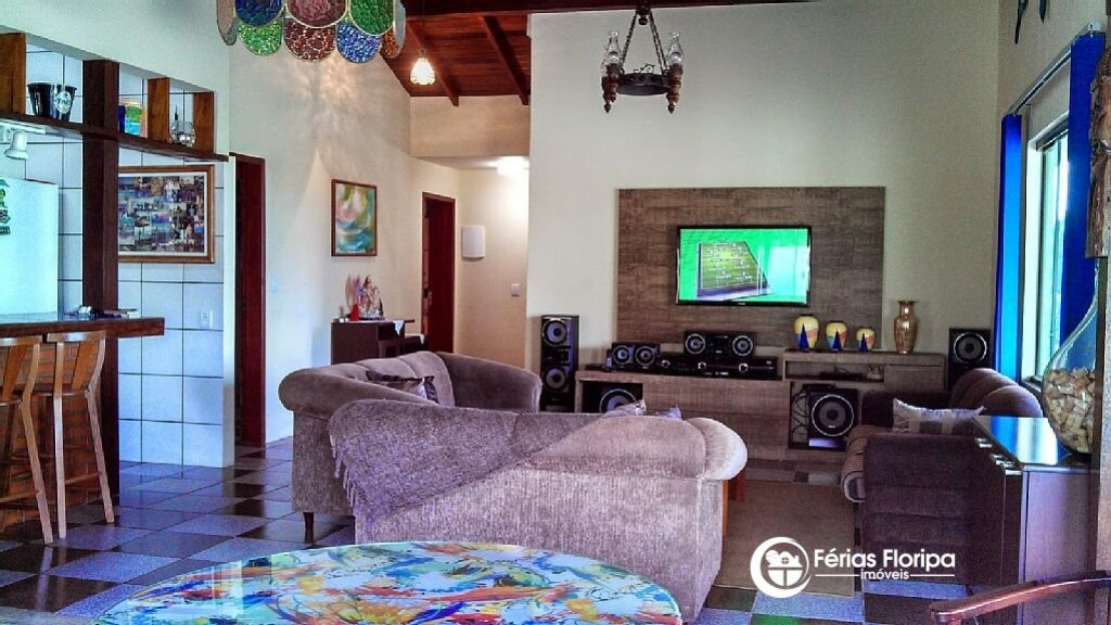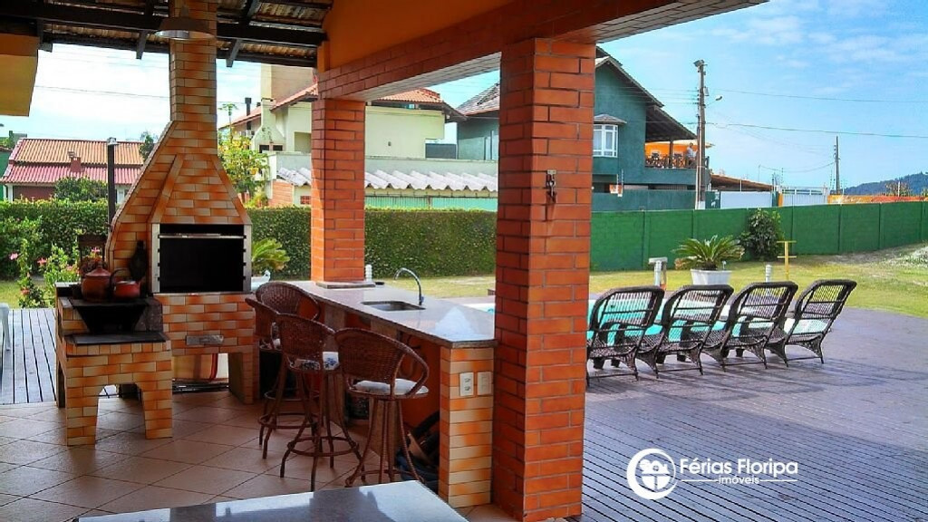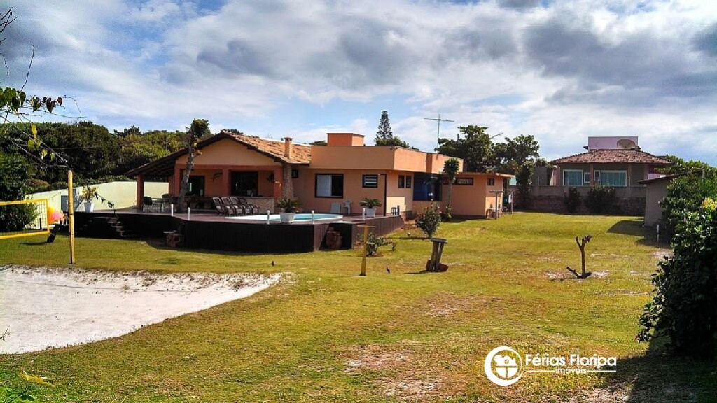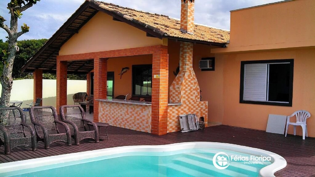 São 3 quartos todos climatizados, 4 banheiros, salas de estar e de jogos, churrasqueiras, cozinha integrada, piscina, jardim e com acesso direto à Praia do Campeche.