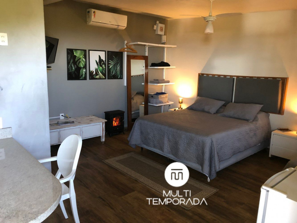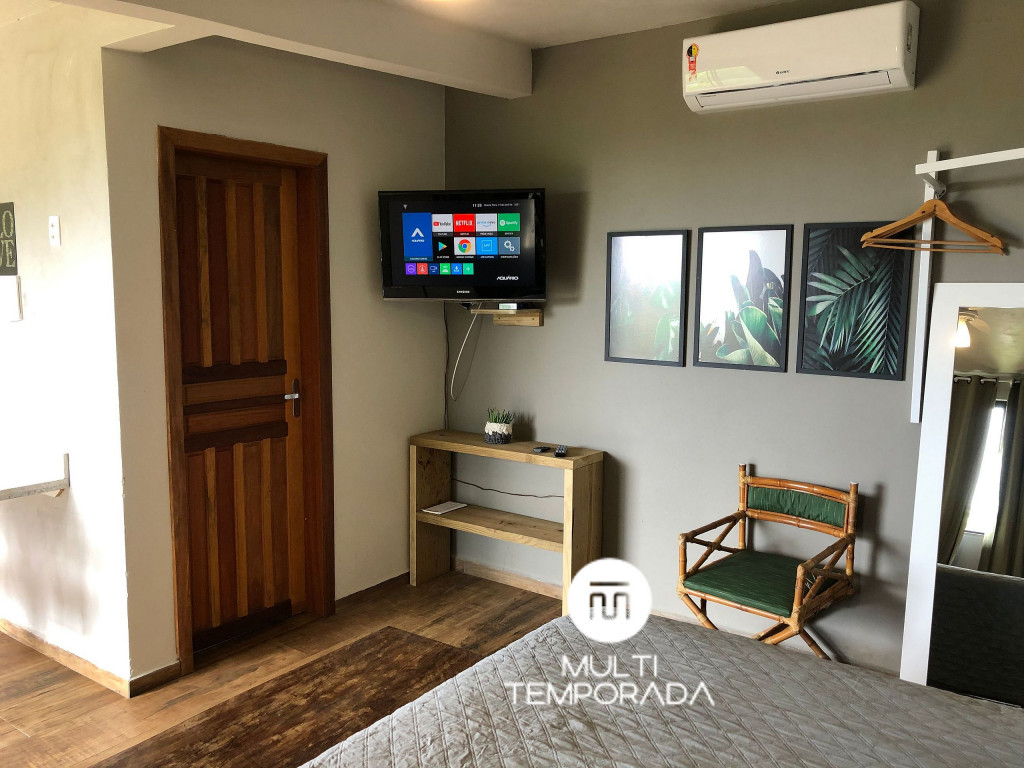 A Multitemporada apresenta o Bangalô Pyxis, uma das 6 unidades do Chalés & Bangalôs Ibiraquera, que possui uma localização e vista privilegiada da lagoa e do mar no bairro de Ibiraquera, em Imbituba, litoral de Santa Catarina. Todas as nossas 6 unidades são privativas, sendo a piscina e o fogo de chão os únicos espaços compartilhados na propriedade.O Bangalô Pyxis fica em um amplo terreno com uma bela vista da lagoa e do mar. O Bangalô totalmente climatizado (ar-condicionado quente e frio), lareira interna, acomoda até 4 pessoas em uma cama de casal e uma bicama, com uma decoração prática e agradável. Além disso, possui banheiro, cozinha com itens básicos, frigobar, fogão, liquidificador, cafeteira, pia e mesa. Temos TV de Tela Plana com Smart TV. No deck você pode usufruir ao ar livre de cadeiras espreguiçadeiras, redes e uma churrasqueira privativa.Ibiraquera é um bairro de Imbituba, ao lado da Praia do Rosa com lagoas preservadas e natureza. Um lugar de vasta beleza, ideal para quem pratica esportes como trilhas, bike, windsurf, kitesurf, surf, paraquedismo, canoagem, stand up paddle e outros. Ideal para quem quer relaxar, a vizinhança é bem tranquila.OBSERVAÇÕES: