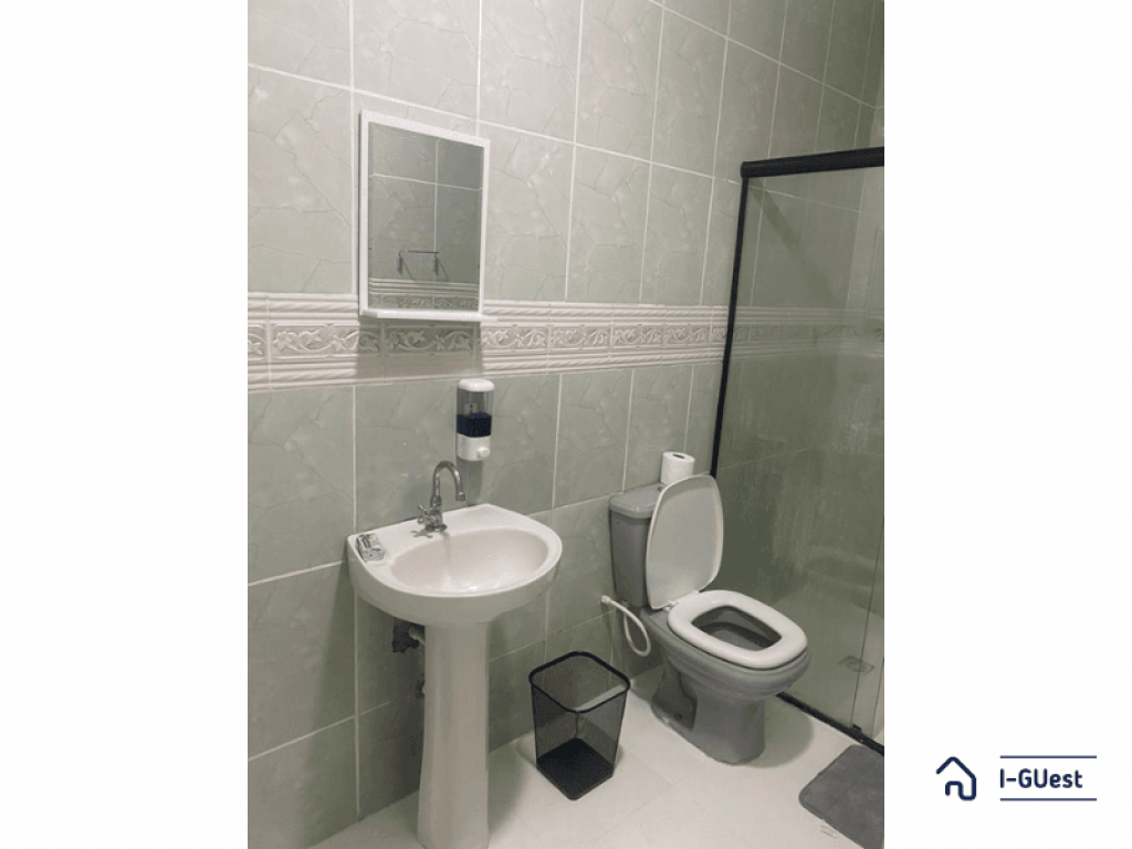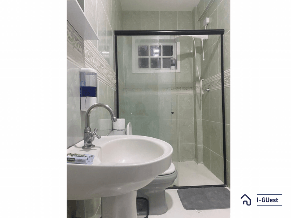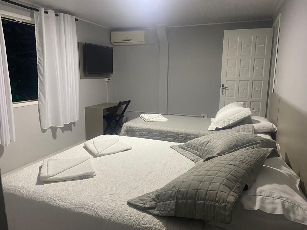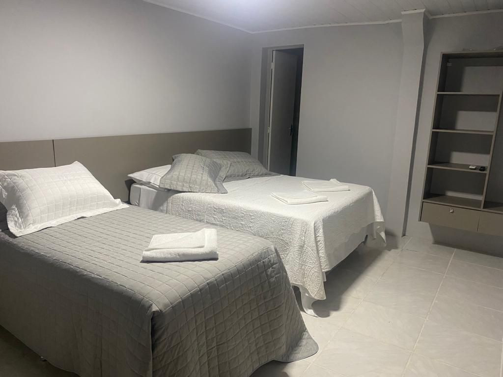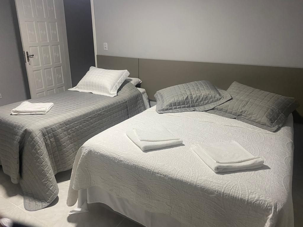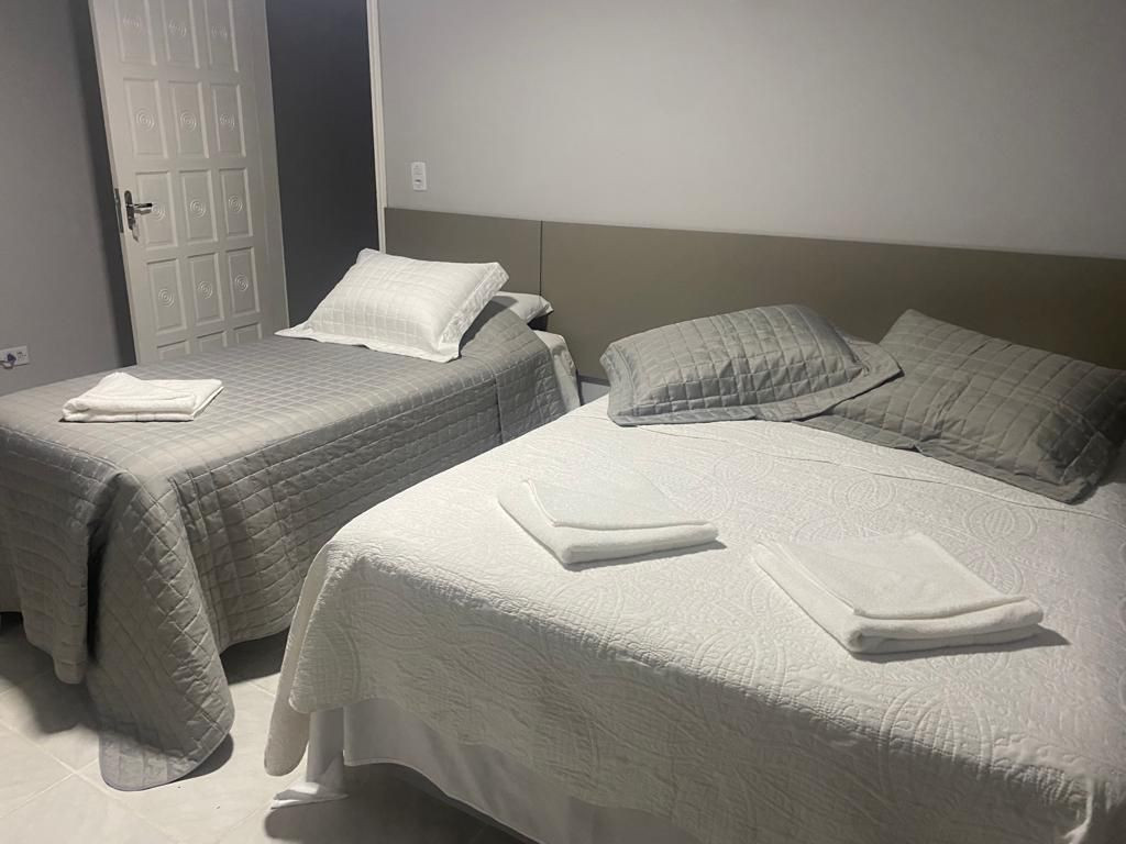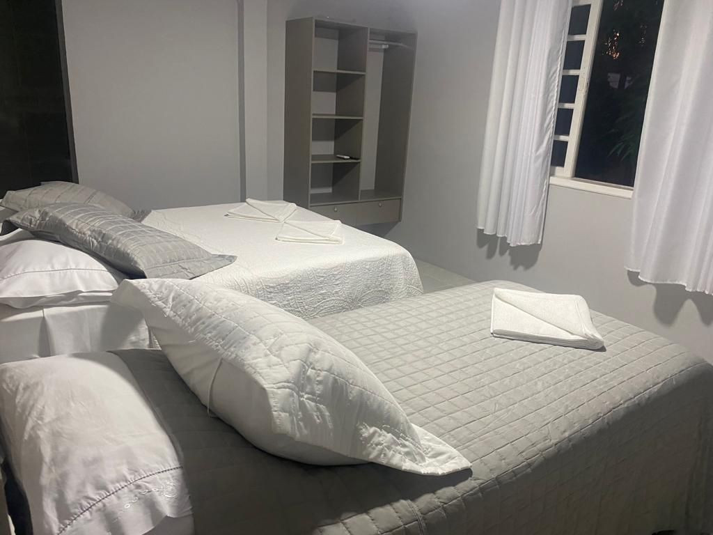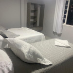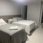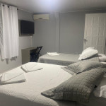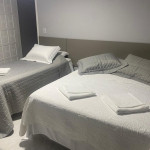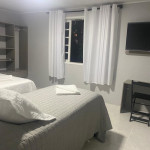 O quarto contém uma cama de casal, podendo colocar mais duas de solteiro, assim comportando até 04 pessoas. Chuveiro elétrico e uma mesa para trabalho e/ou estudos. Todos os quarto contém enxoval 150 fios que proporcional conforto e qualidade.