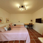 Seu trabalho é home office? Então vc achou o lugar certo, porque dentro do quarto temos 2 bancadas de trabalho grandes e com cadeiras apropriadas, tipo escritório. Cansou do trabalho? É só dar uma relaxada no nosso jardim, tomar um café ou curtir nossa rede. Simplesmente... Maraaaa!